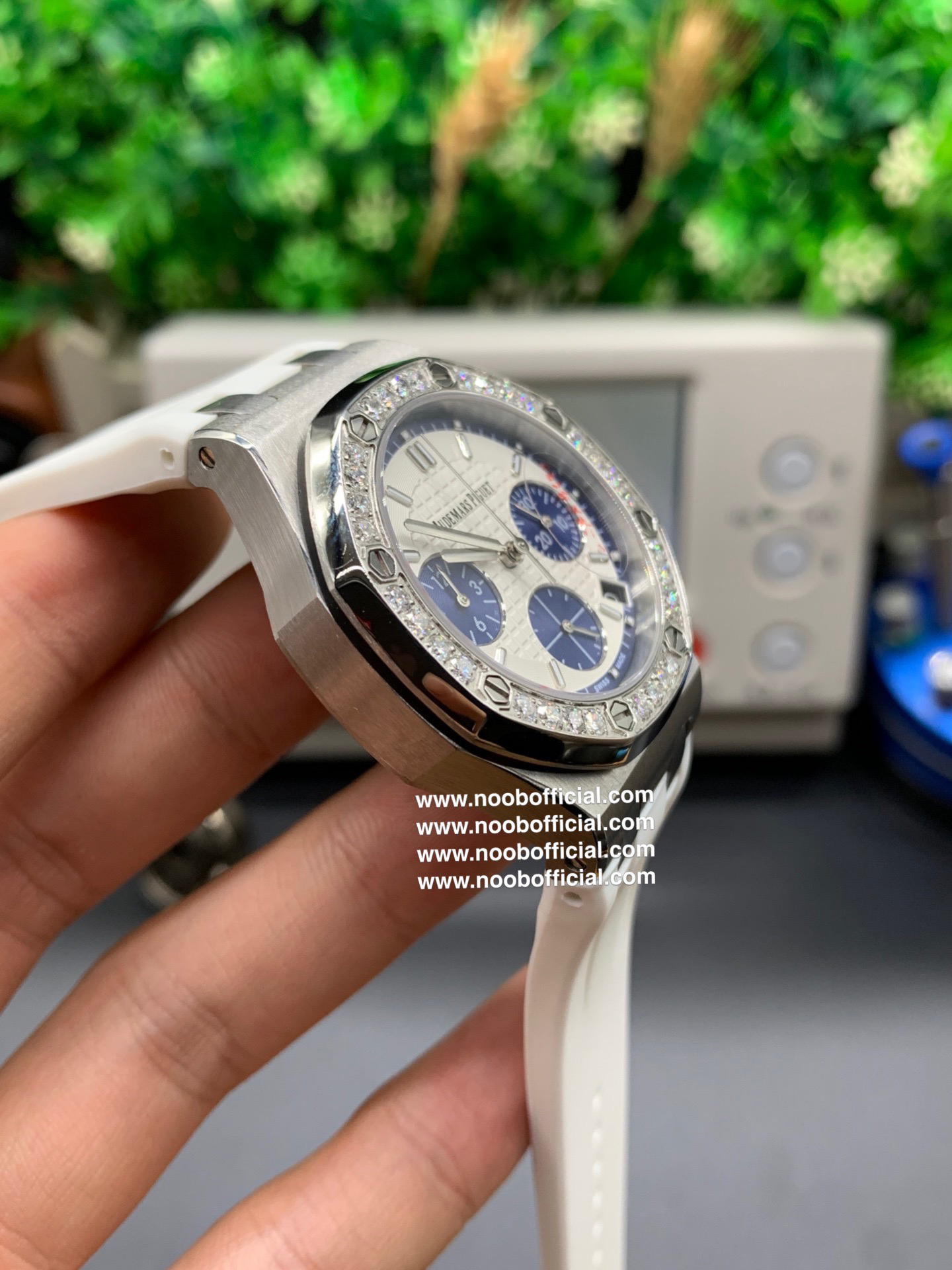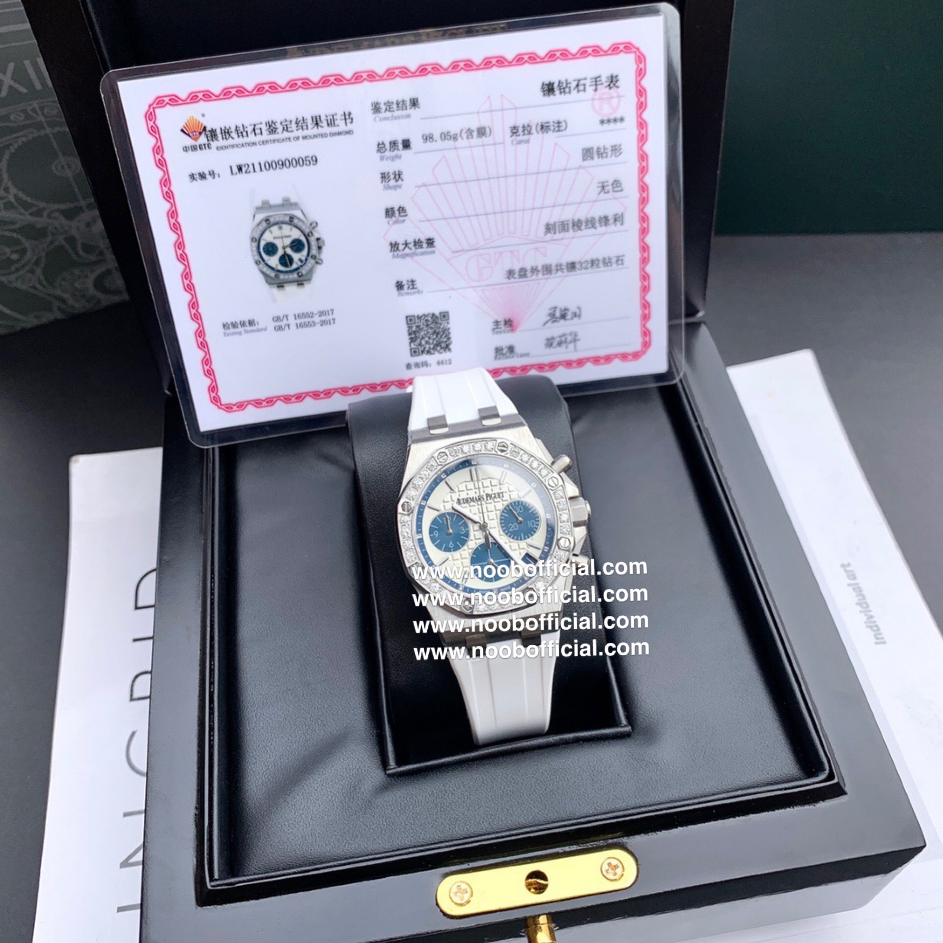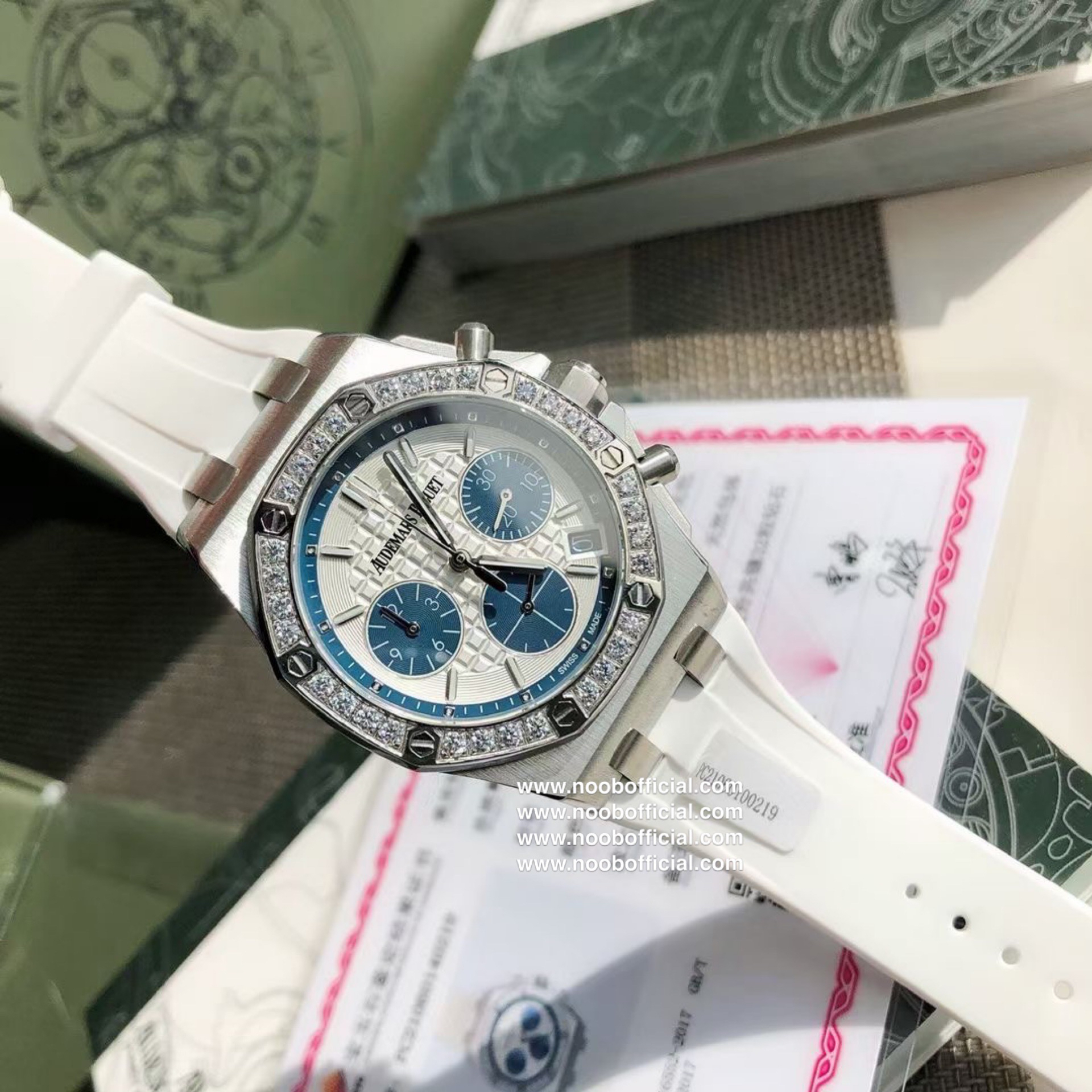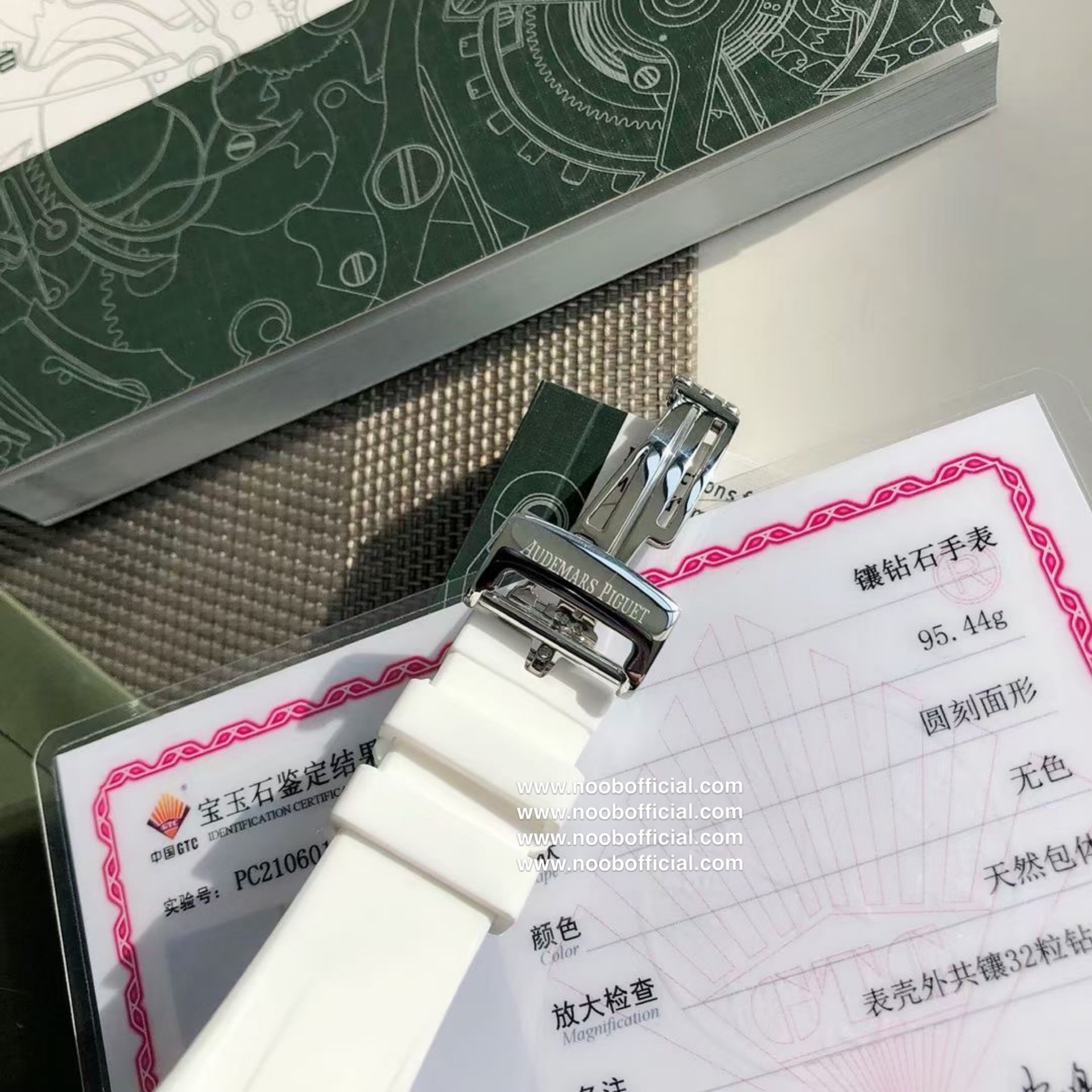 新皇家橡树离岸系列计时石英腕表,当下热门的爱彼女式腕表之一!A.P-爱彼皇家橡树离岸型系列,表盘饰以Lady Tapisserie格纹装饰,呈现出更强的视觉冲击效果新皇家橡树离岸系列计时石英腕表,当下最热门的爱彼女式腕表之一!A.P-爱彼皇家橡树离岸型系列,表盘饰以Lady Tapisserie格纹装饰,呈现出更强的视觉冲击效果。表壳904精钢镶钻32颗2.0明亮式vvs级别切割美钻(约1.02克拉)带来非凡触感与视觉享受,据爱彼柜台sale介绍他们的钻石只用D色镶嵌,呈现璀璨光泽,这才是珠宝手表才有的态度 。腕表尺寸37毫米,迎合了现代对于大表径女表潮流的追求,打造出女性更为英气的一面,熠熠生辉 质感十足,表带采用白色液态硅胶经欧盟认证环保材质制成脏了可用清水冲洗干净或湿纸巾擦净即可。六针计时进口石英机芯 走时精准零误差。蓝宝石防刮玻璃读时更加清晰明了。八角形表壳设计风格彰显独特,活力十足。女款中的最佳经典!