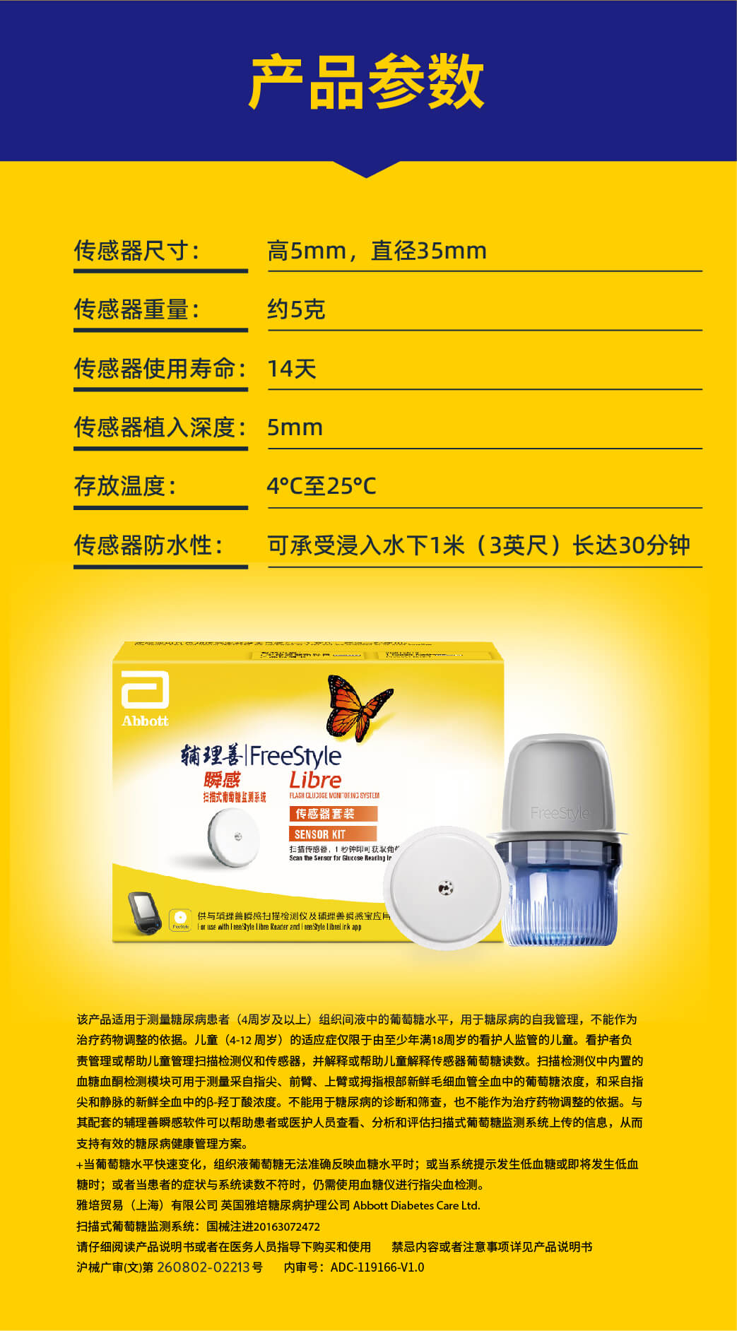 【1代优享】雅培(Abbott)瞬感动态血糖仪传感器 /2个探头【有效期到2027年1月】