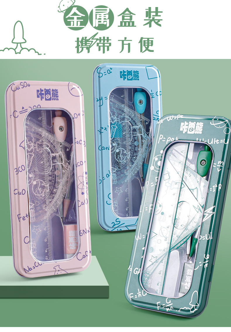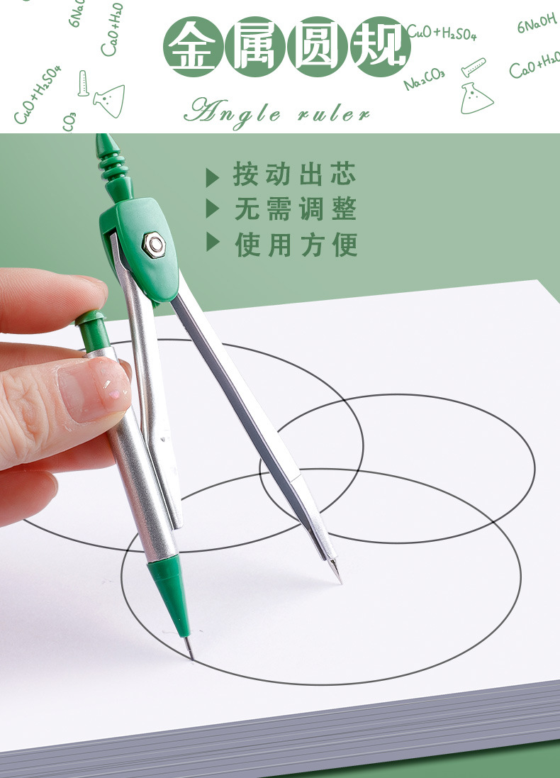 【圆规尺子8件套装】可爱三角尺学生文具用品直尺三角板小学生套尺学生用多功能初中生绘图金属尺规学习画图