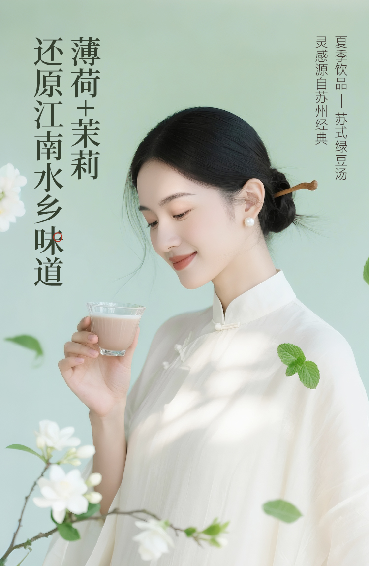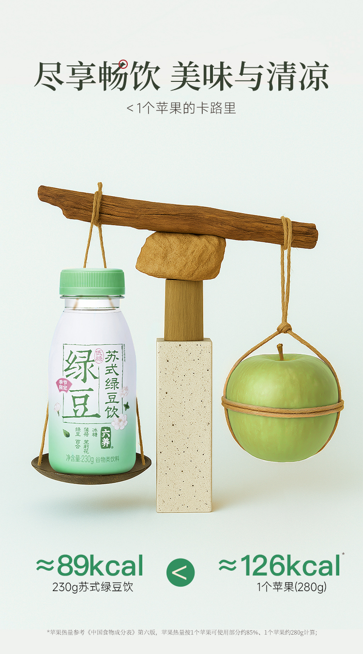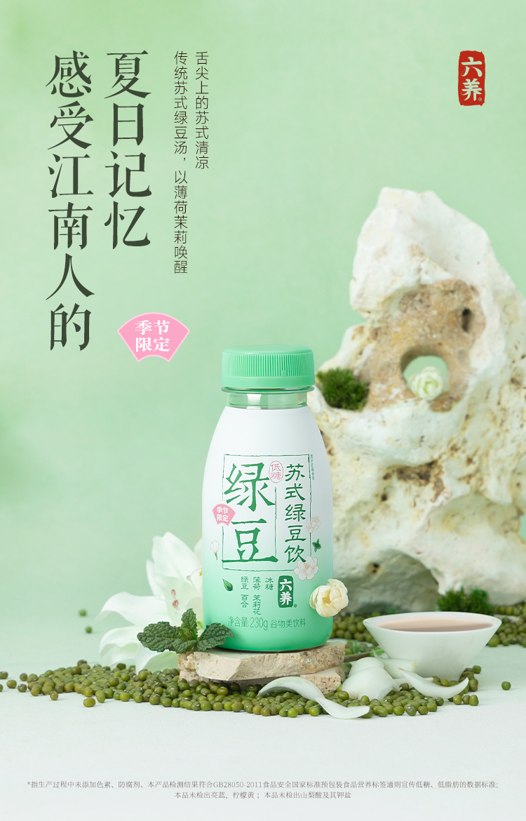 六养苏式绿豆饮230g*8瓶清爽饮品绿豆百合薄荷茉莉花谷物饮料包邮