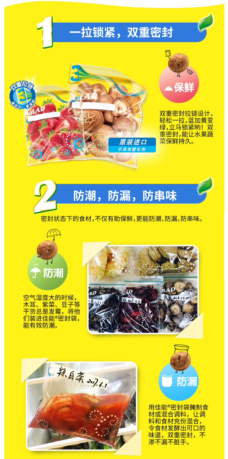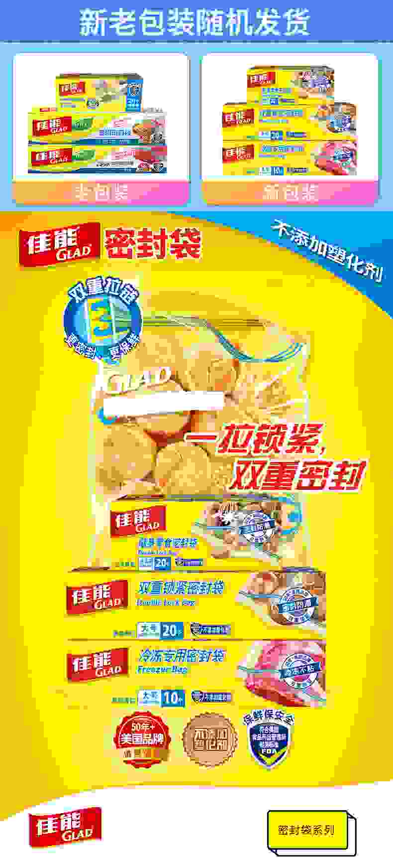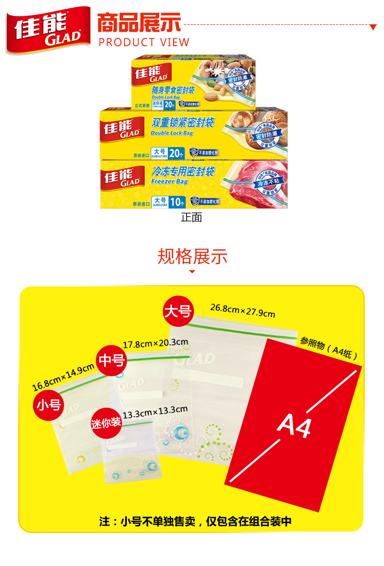 佳能(Glad)大号+小号+冷冻专用密封袋 密实袋组合 双重锁紧密封防漏