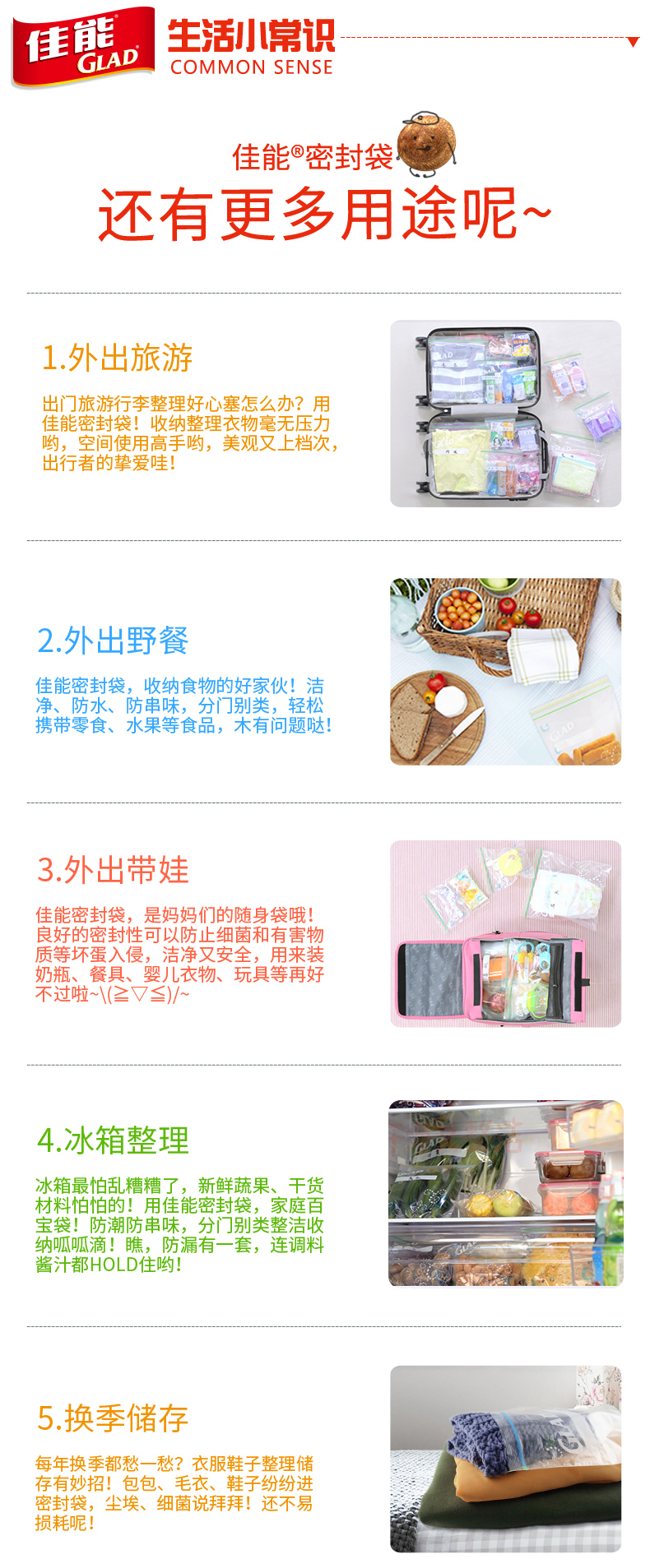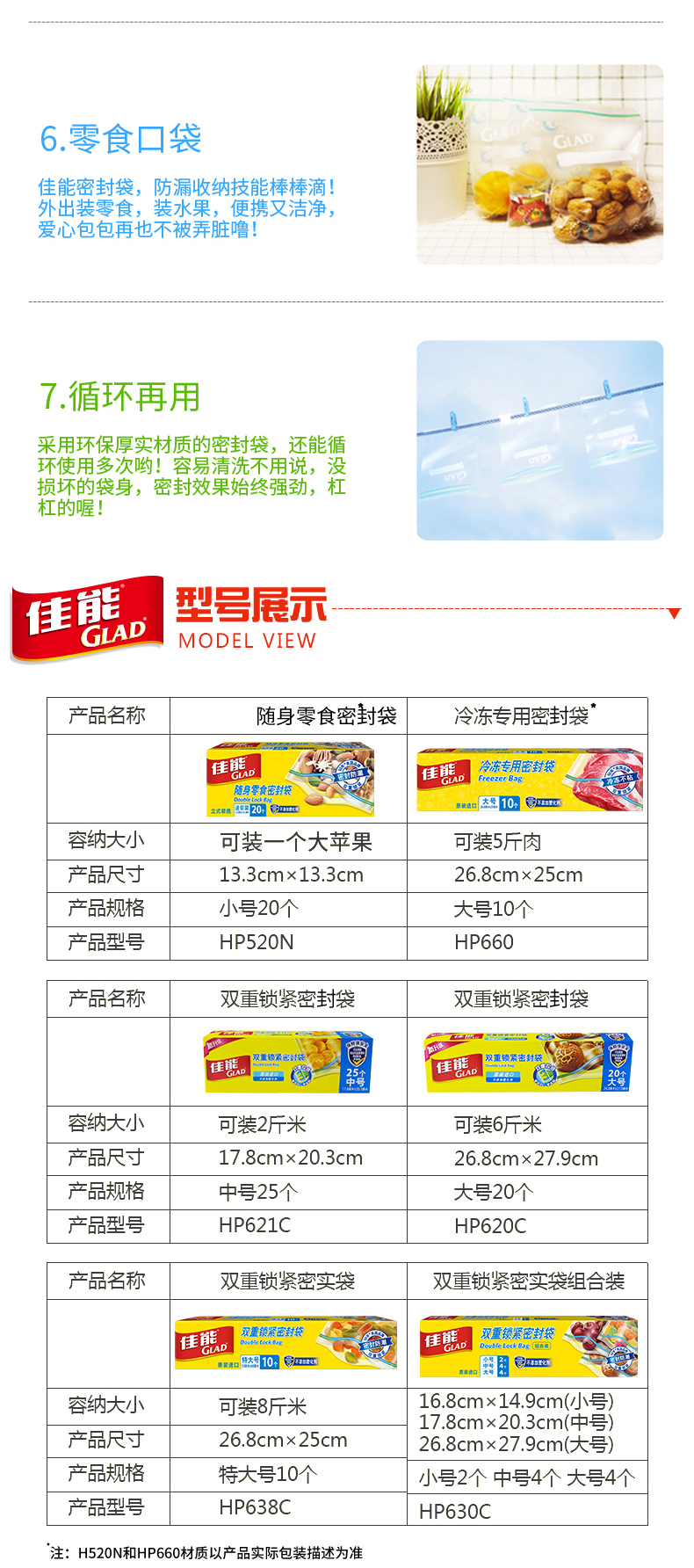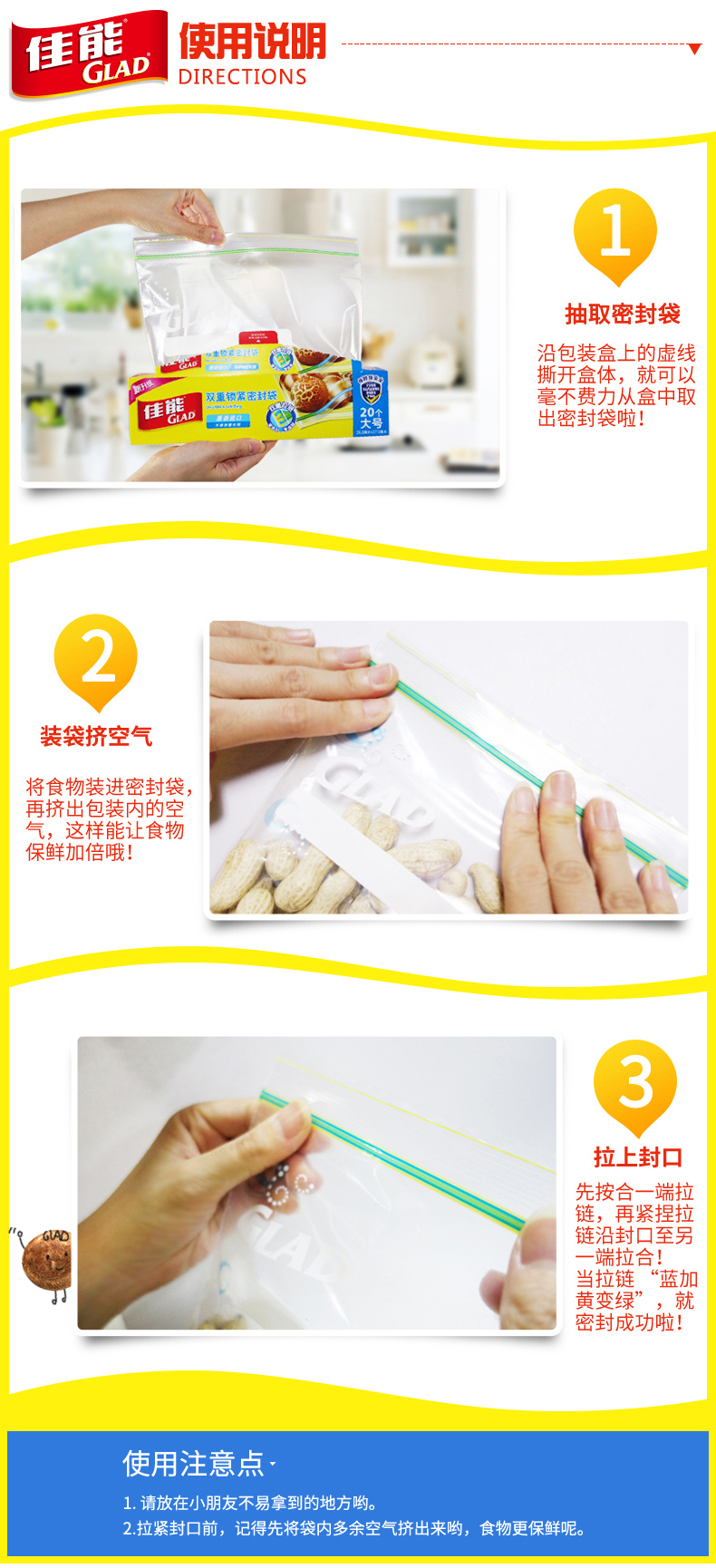 佳能(Glad)大号+小号+冷冻专用密封袋 密实袋组合 双重锁紧密封防漏