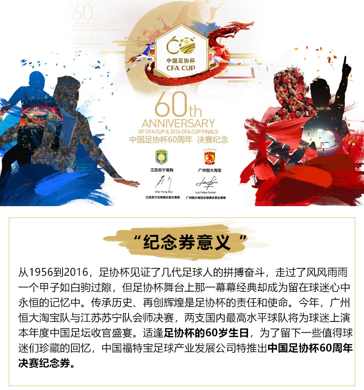 SFS现货正版 足协杯60周年决赛纪念券【江苏队版】