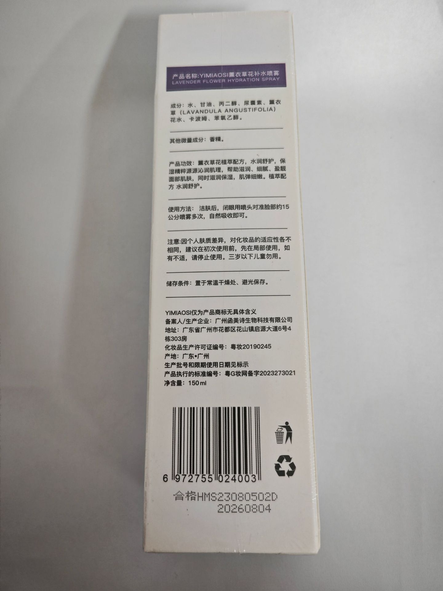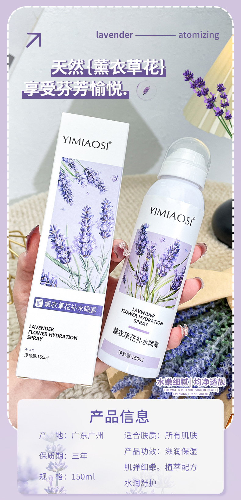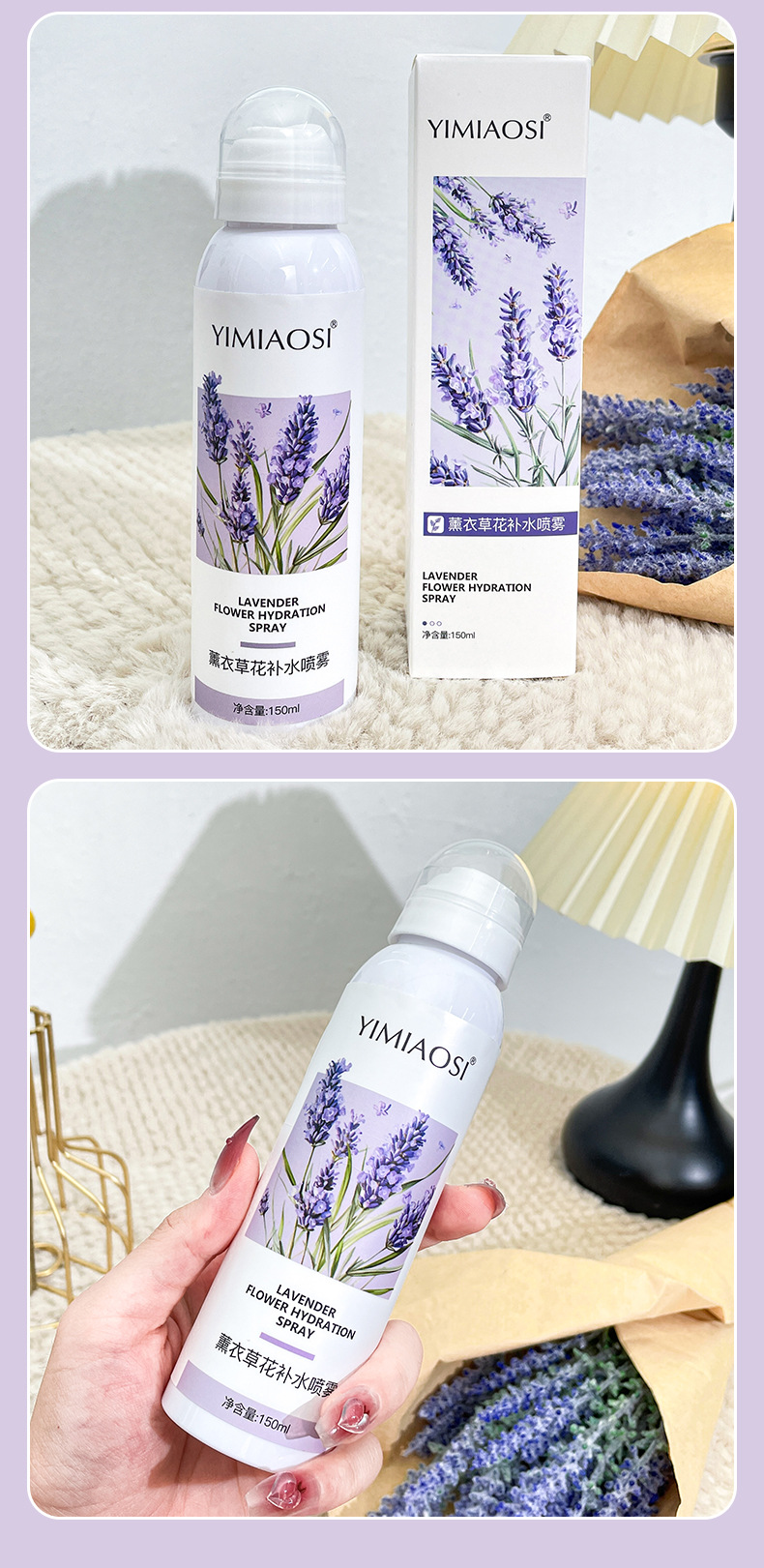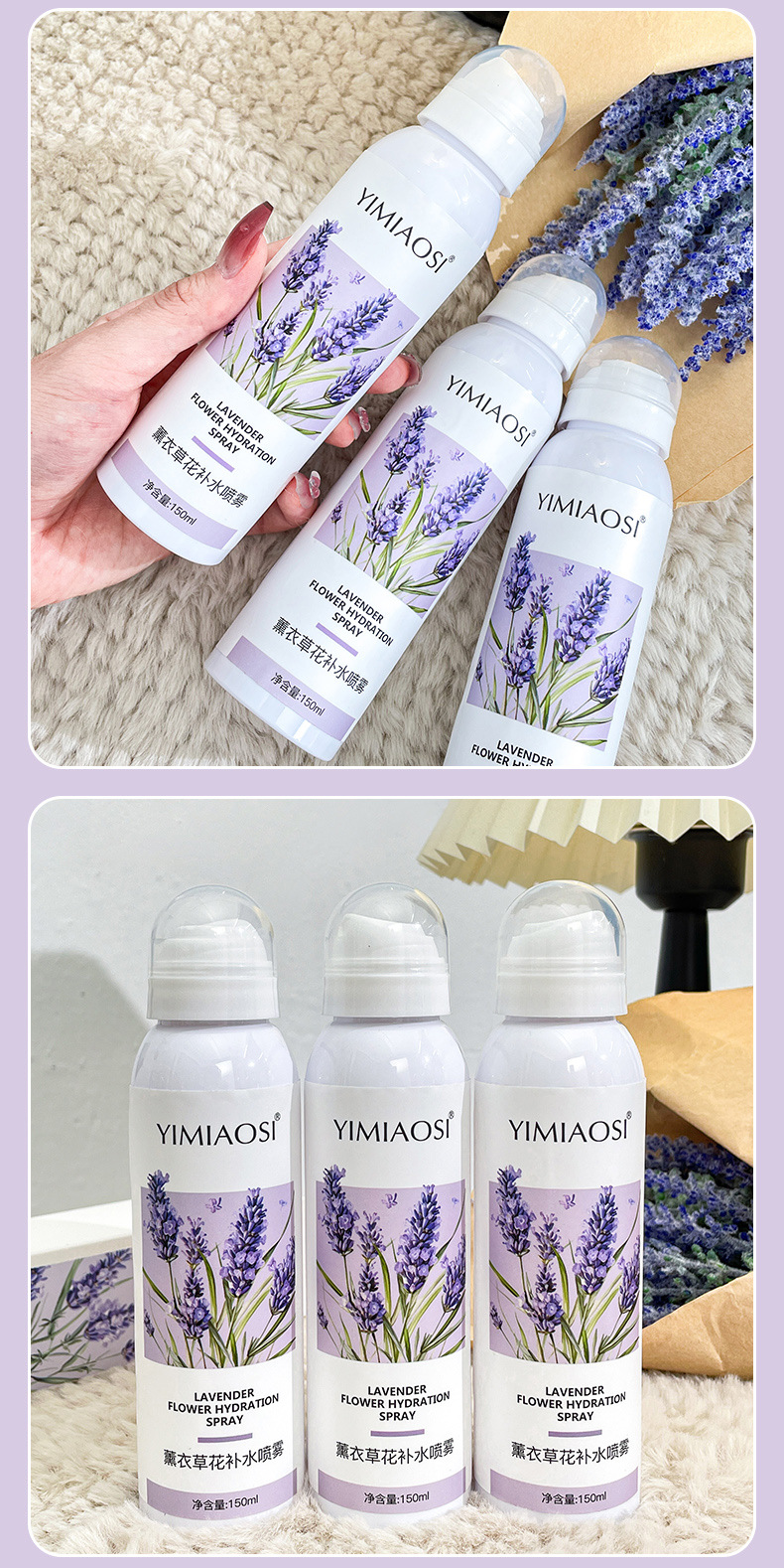 「拍1发3!」YIMIAOSI薰衣草补水喷雾水150ml单瓶 补水保湿提亮湿敷精华爽肤水美容护肤