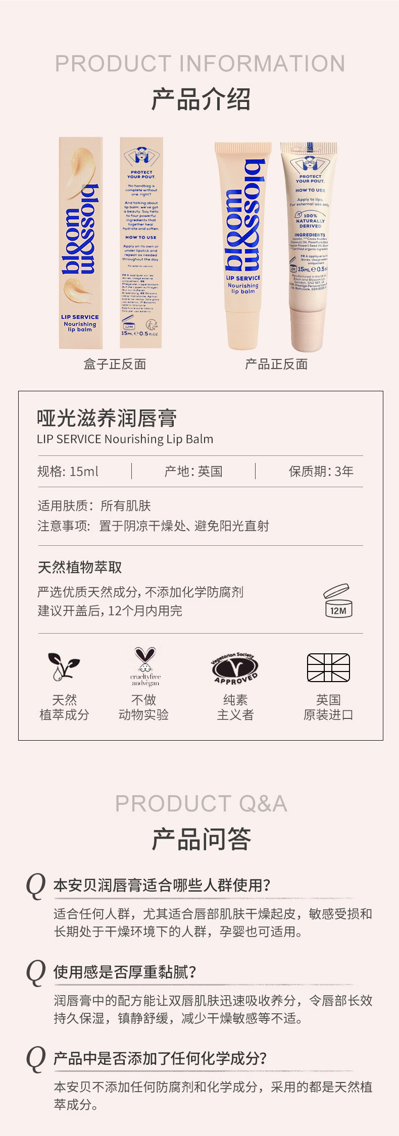 保税直发 Bloom and Blossom 哑光滋养保湿润唇膏 15mL/15mLx2【 总效期未开封是三年 开封后保质期一年 】