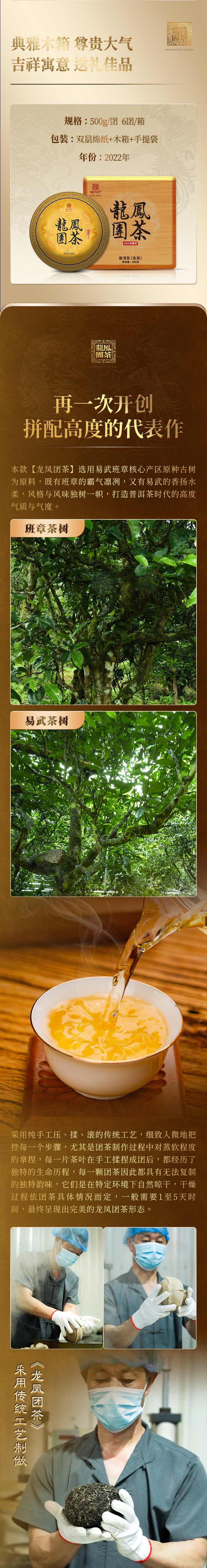 【龙凤团茶】龙凤团茶完美融合 经典传承 2022年云南普洱茶生茶手工团茶500g木箱装配手提袋