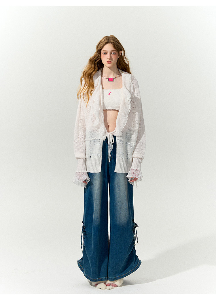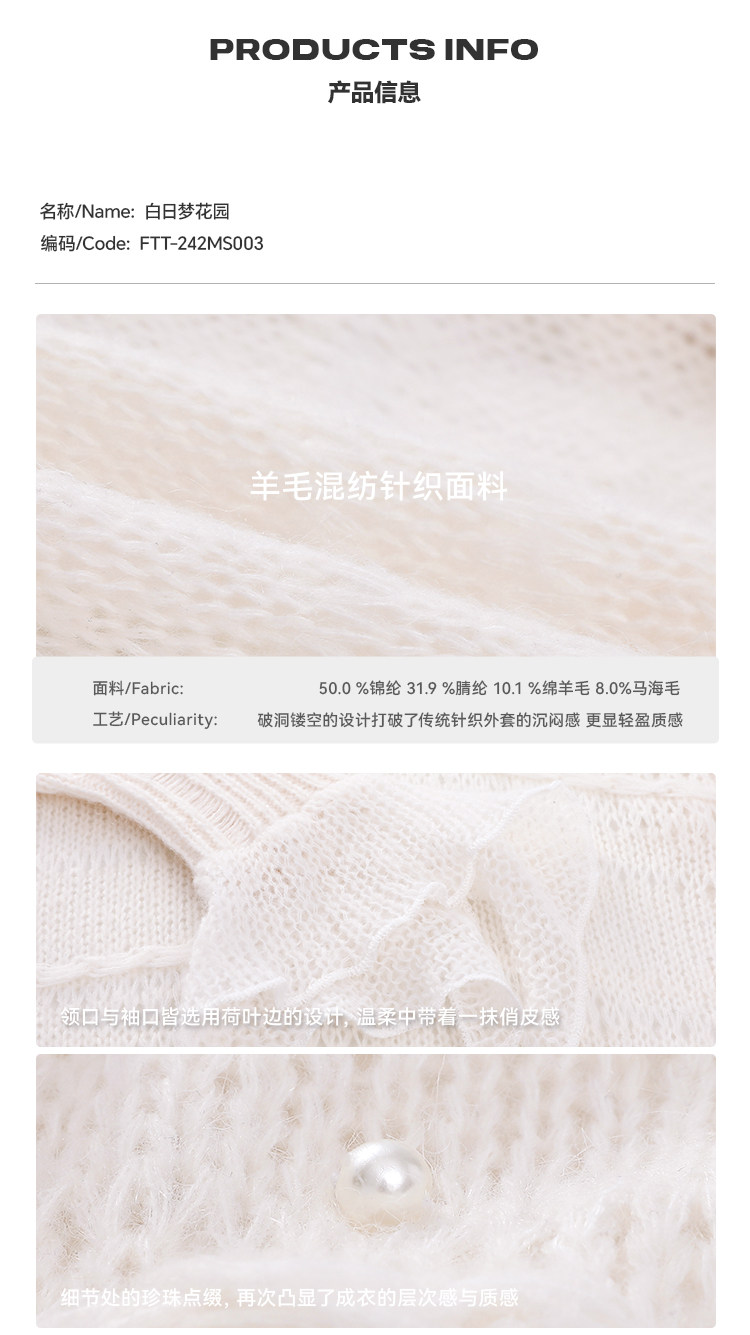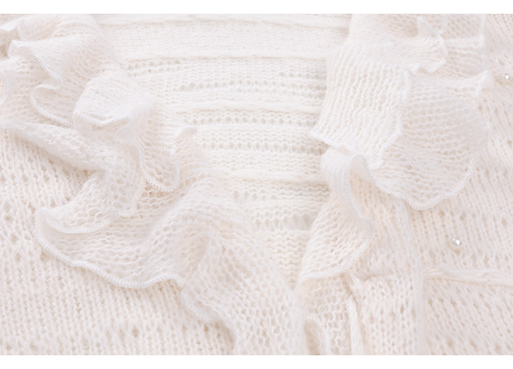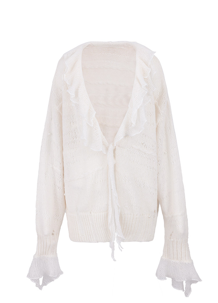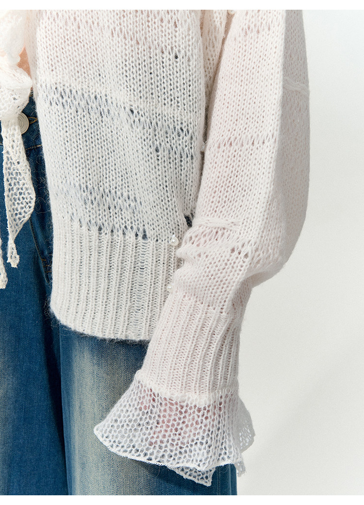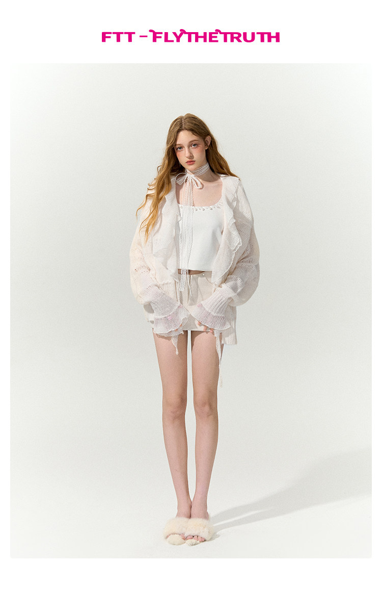 FTT FlyTheTruth『珍珠梦』 韩系荷叶边针织衫女秋内搭喇叭袖外套