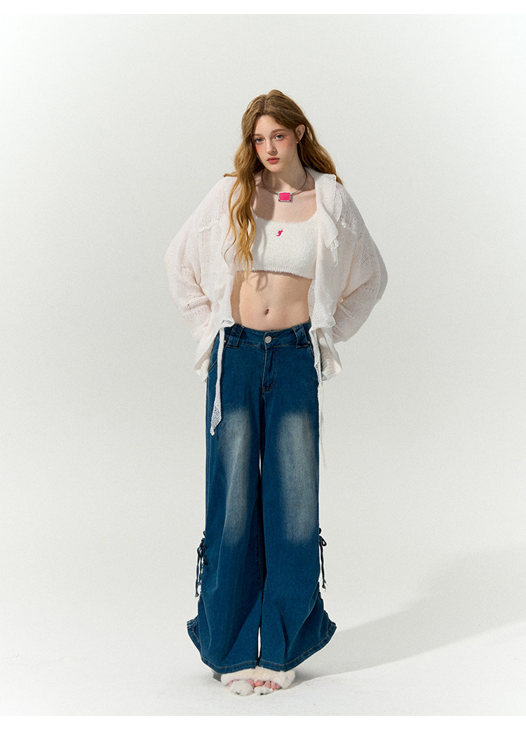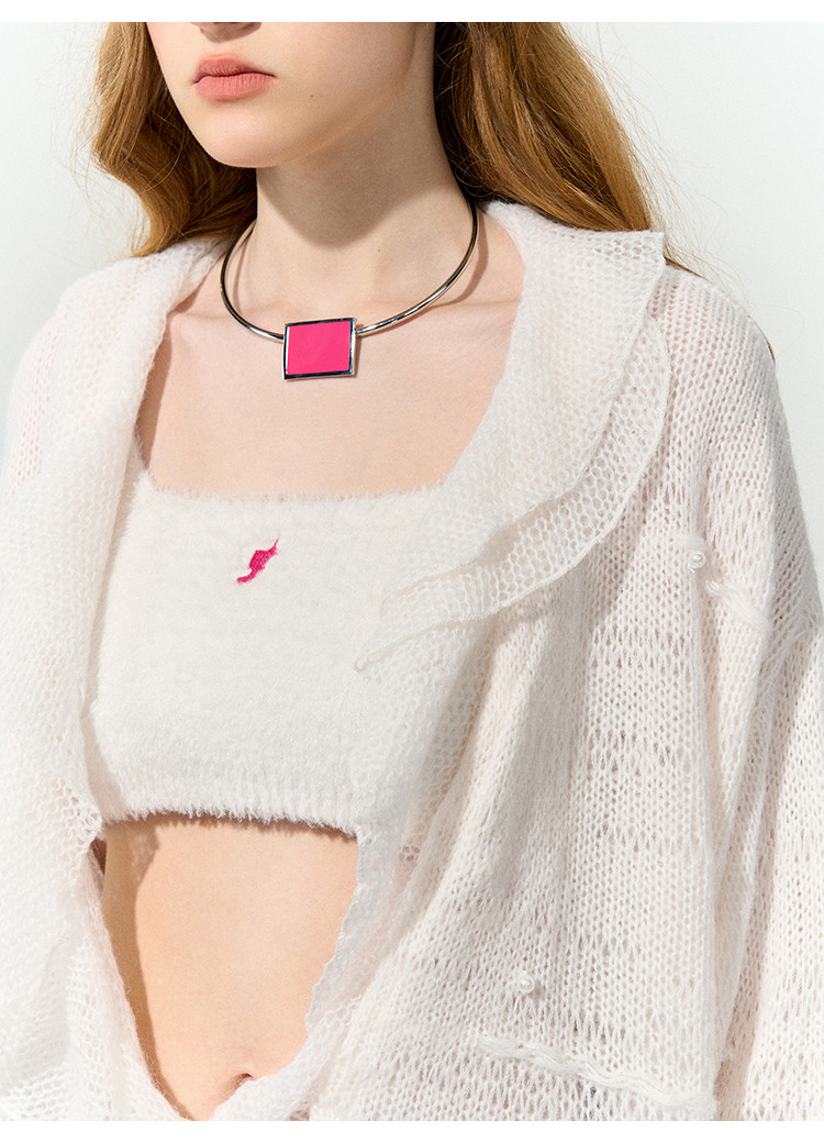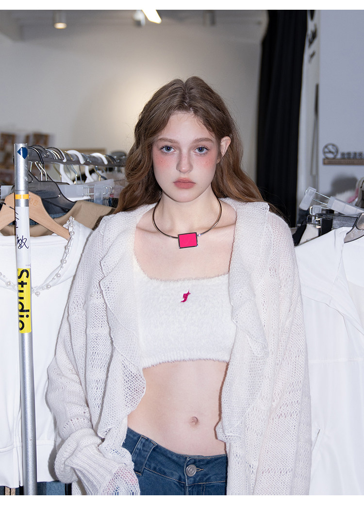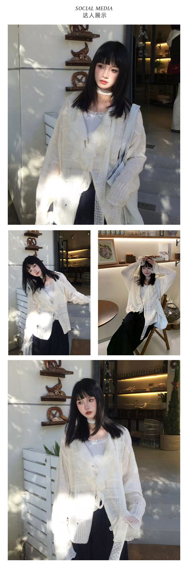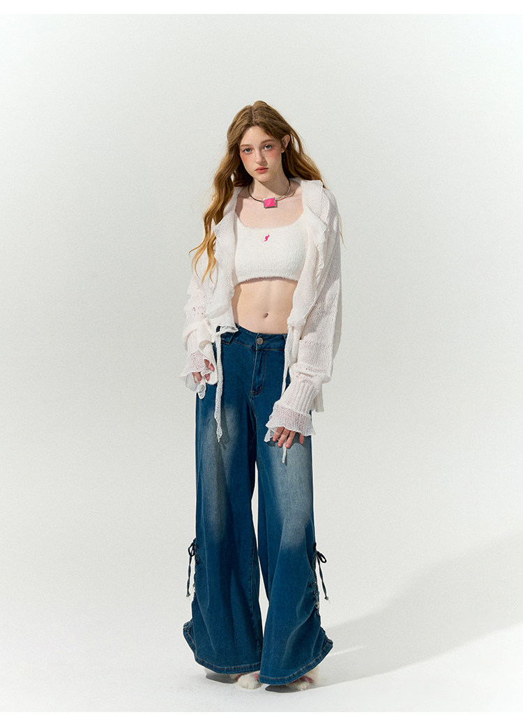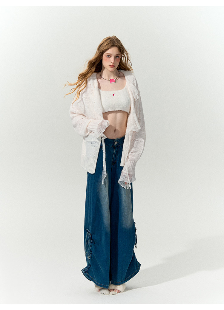 FTT FlyTheTruth『珍珠梦』 韩系荷叶边针织衫女秋内搭喇叭袖外套
