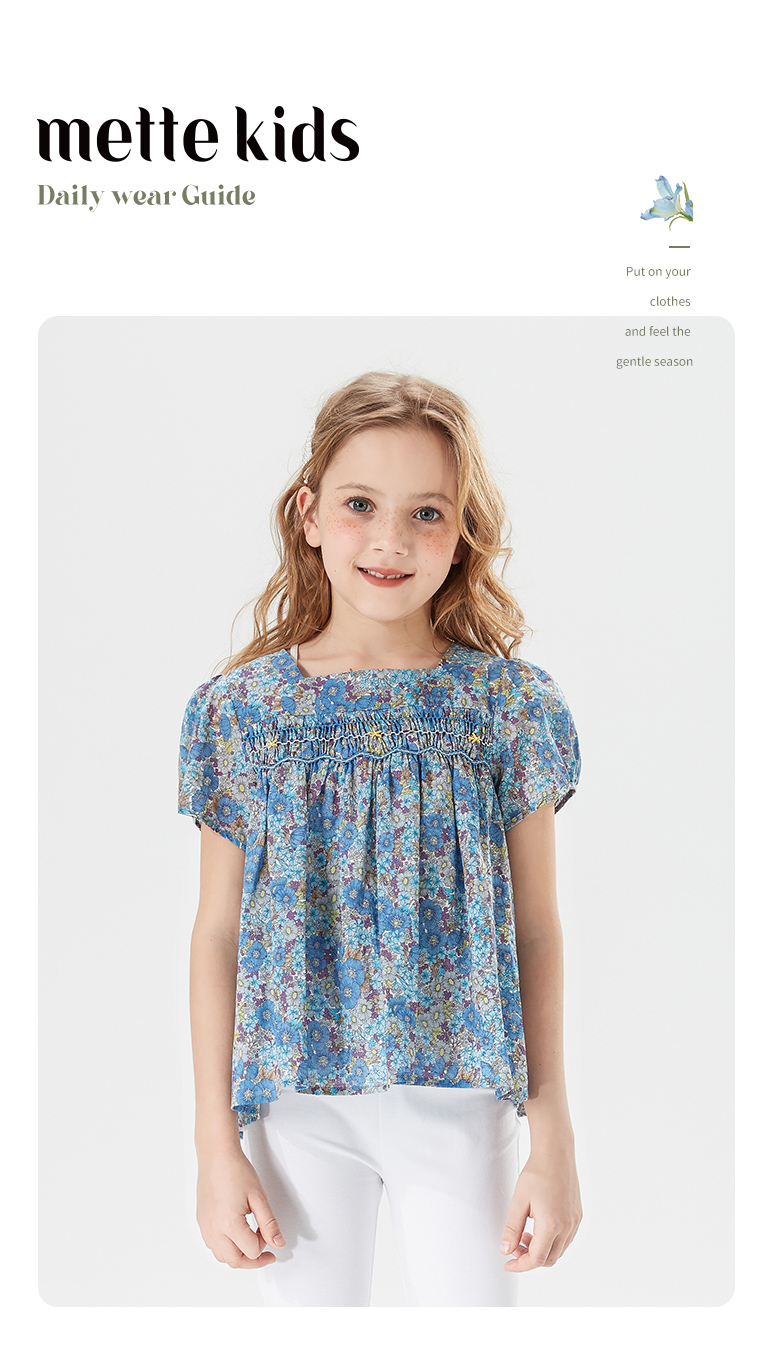 mettekids儿童T恤2022夏季新款洋气泡泡袖公主休闲女童纯棉上衣