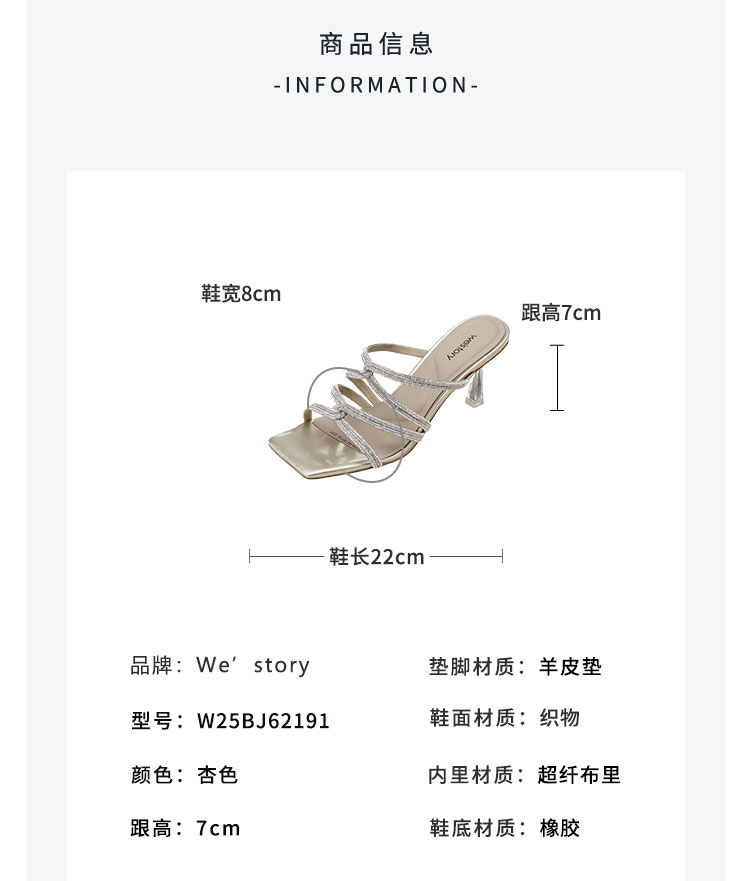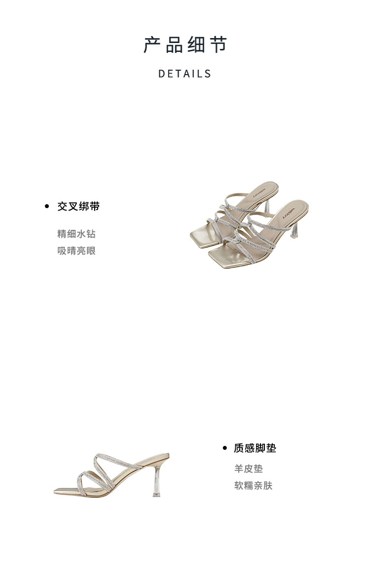 Westory25年夏季钻条羊皮垫拖鞋W25BJ6219112