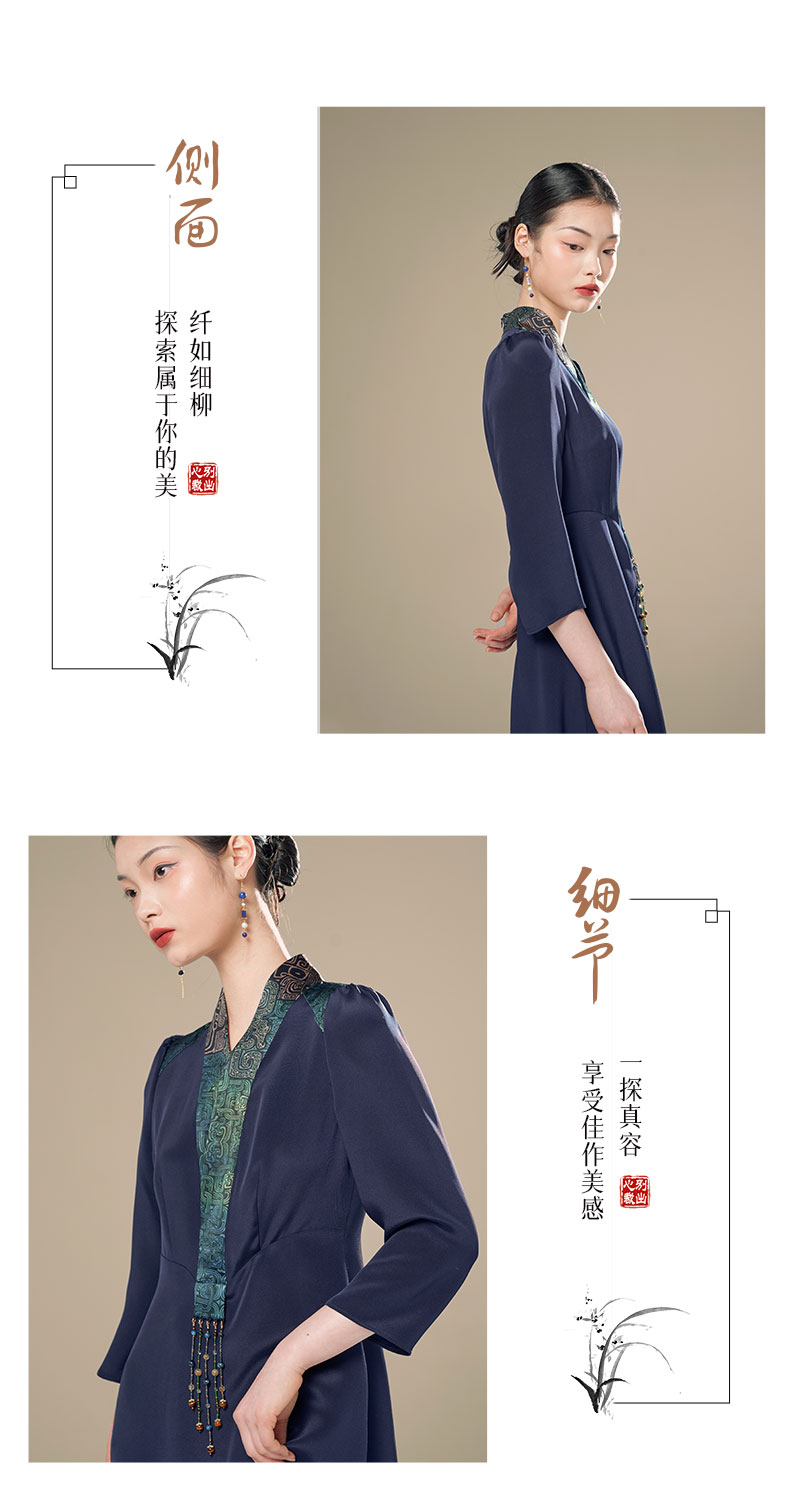 吉祥衣家新中式国风高定真丝新款高端气质修身女装青鸾玄玄连衣裙