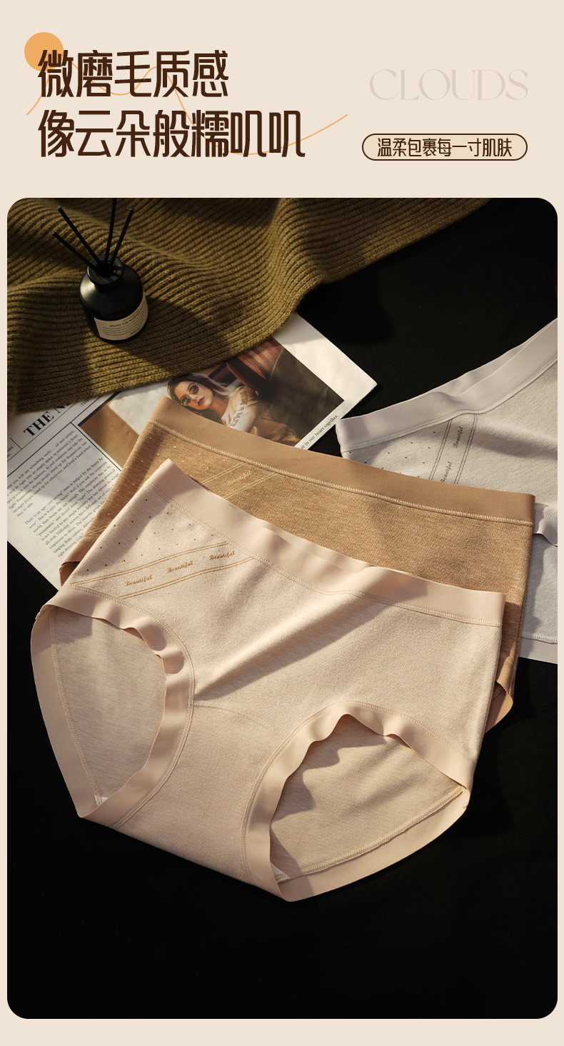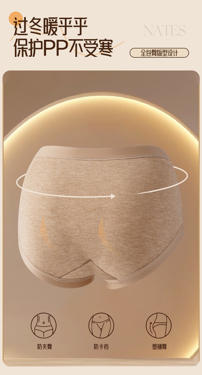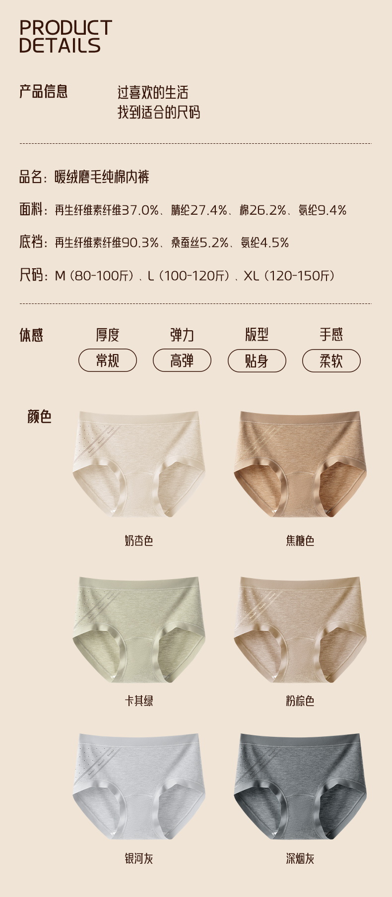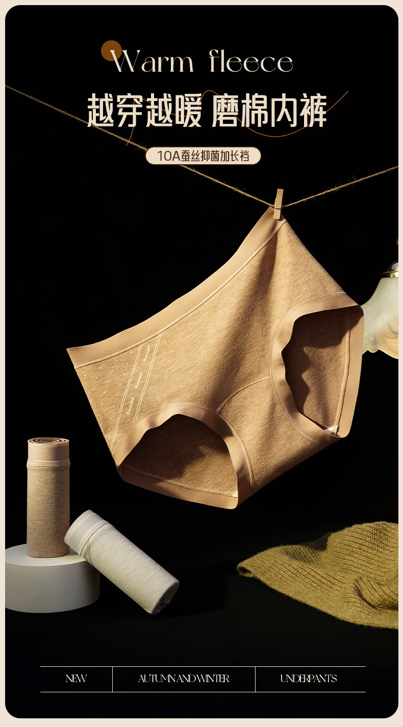 【卖点介绍】•秋冬系列 越穿越暖 磨毛纯棉内裤 10A蚕丝抑菌加长裆