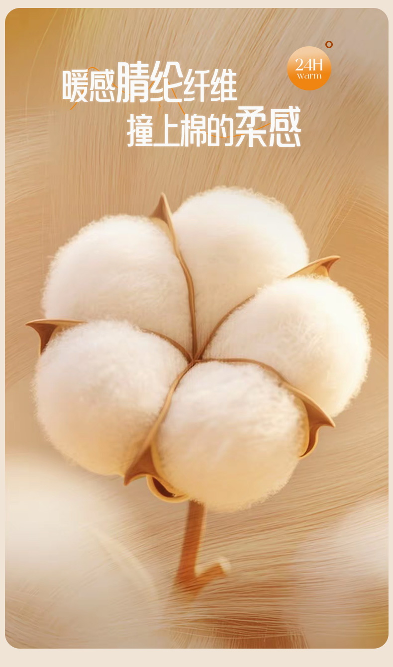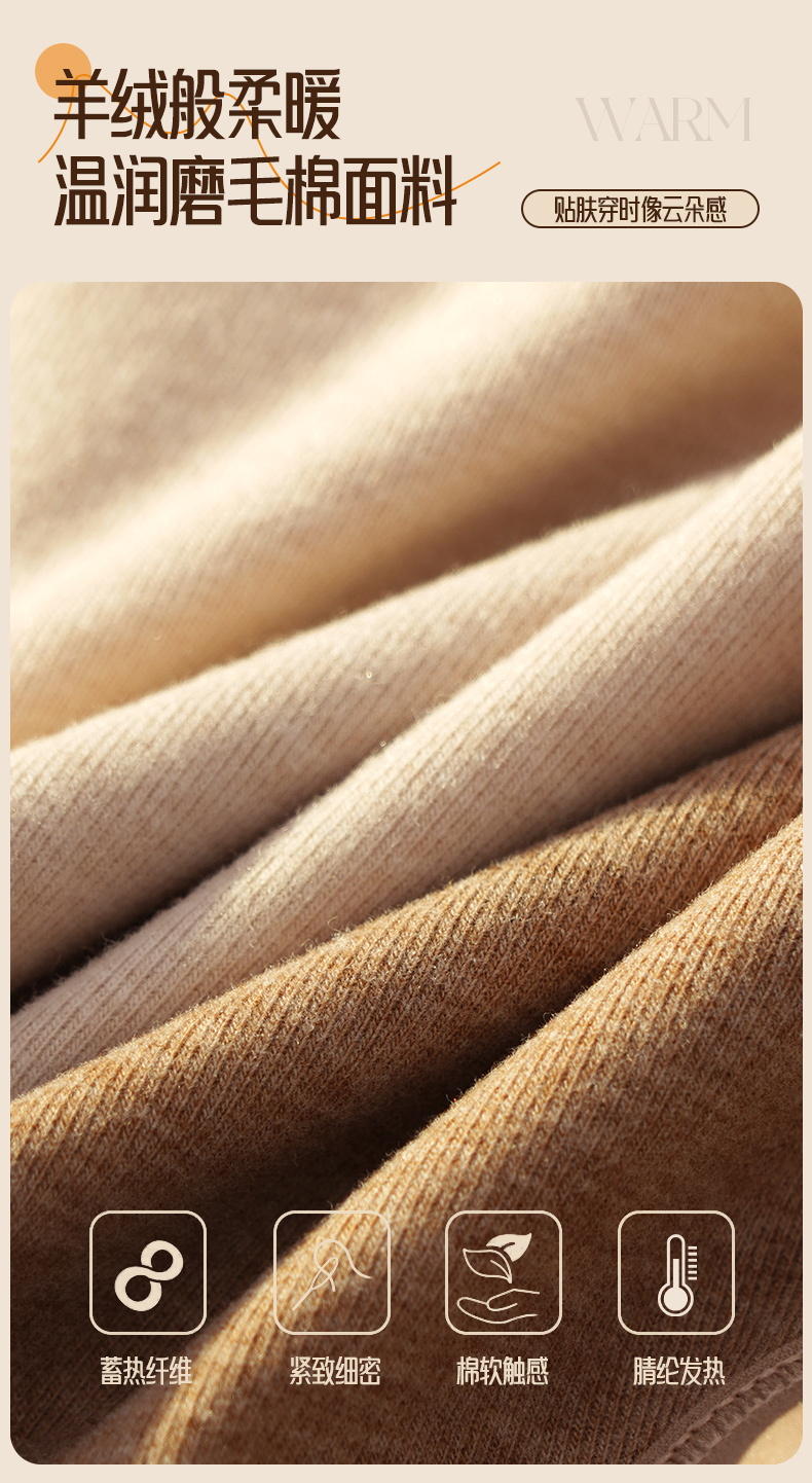 •羊绒般柔暖 温润磨毛棉面料 蓄热纤维 贴肤穿时像云朵感