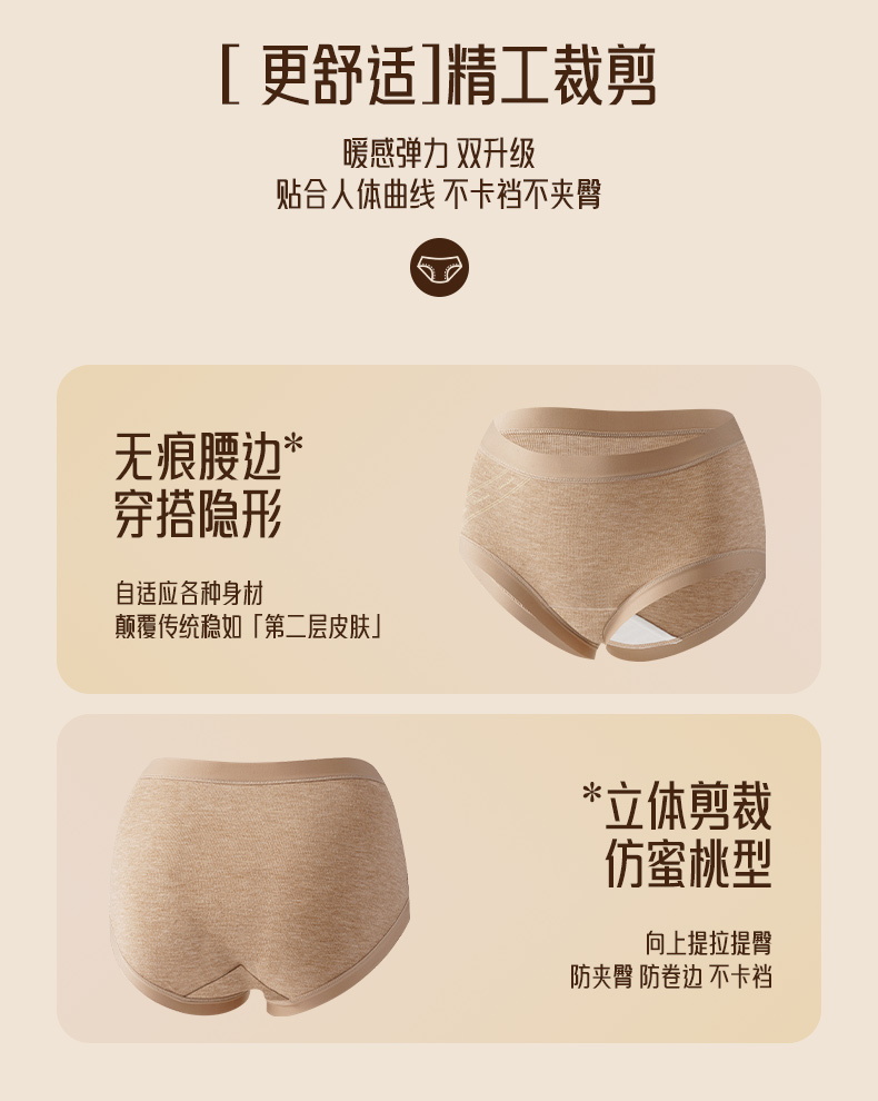 【暖绒磨棉抗菌内裤】温润磨毛棉面料,蓄热纤维!中腰版型,暖感弹力,透气不闷汗!无痕拼接,舒适不勒,不卡裆不夹臀!【SM-X】