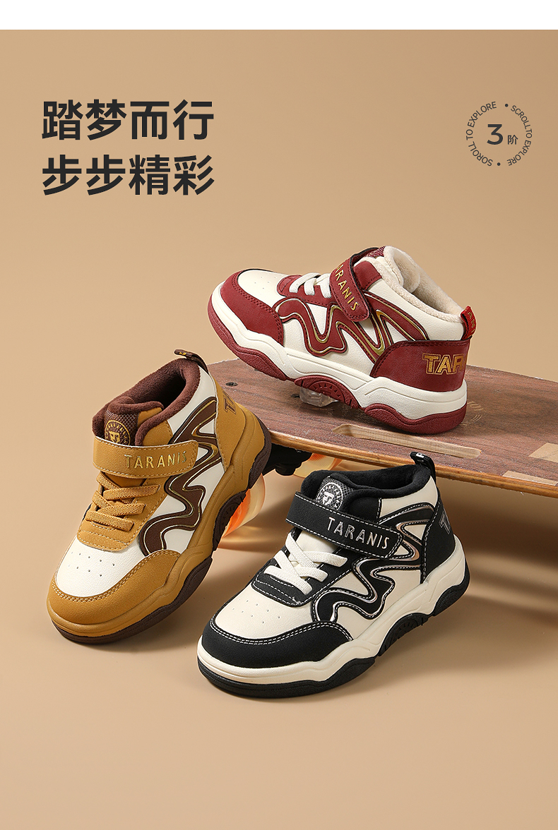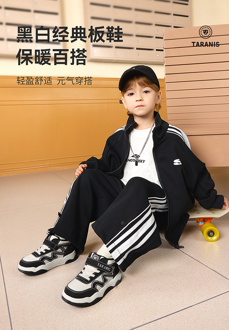 泰兰尼斯童鞋2025冬季新款儿童板鞋男童运动鞋微帮保暖女童休闲鞋 T02X5D6885
