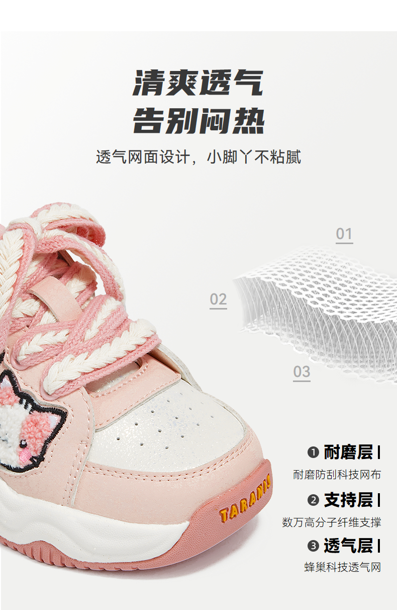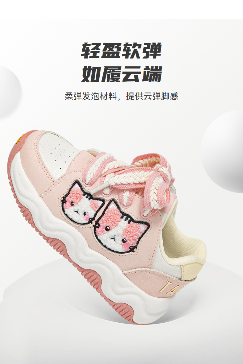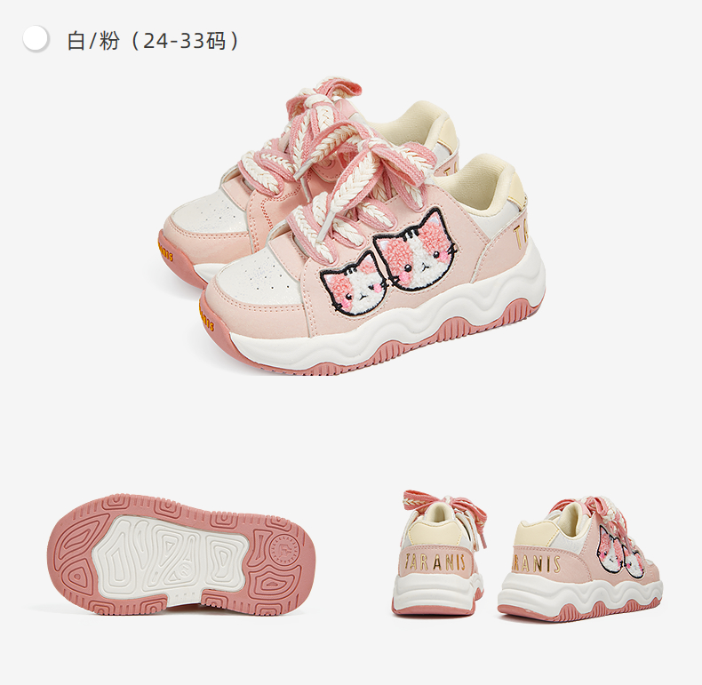 泰兰尼斯秋季新款儿童运动鞋女童轻便软底休闲鞋防滑减震幼儿园鞋 T01X5C6944