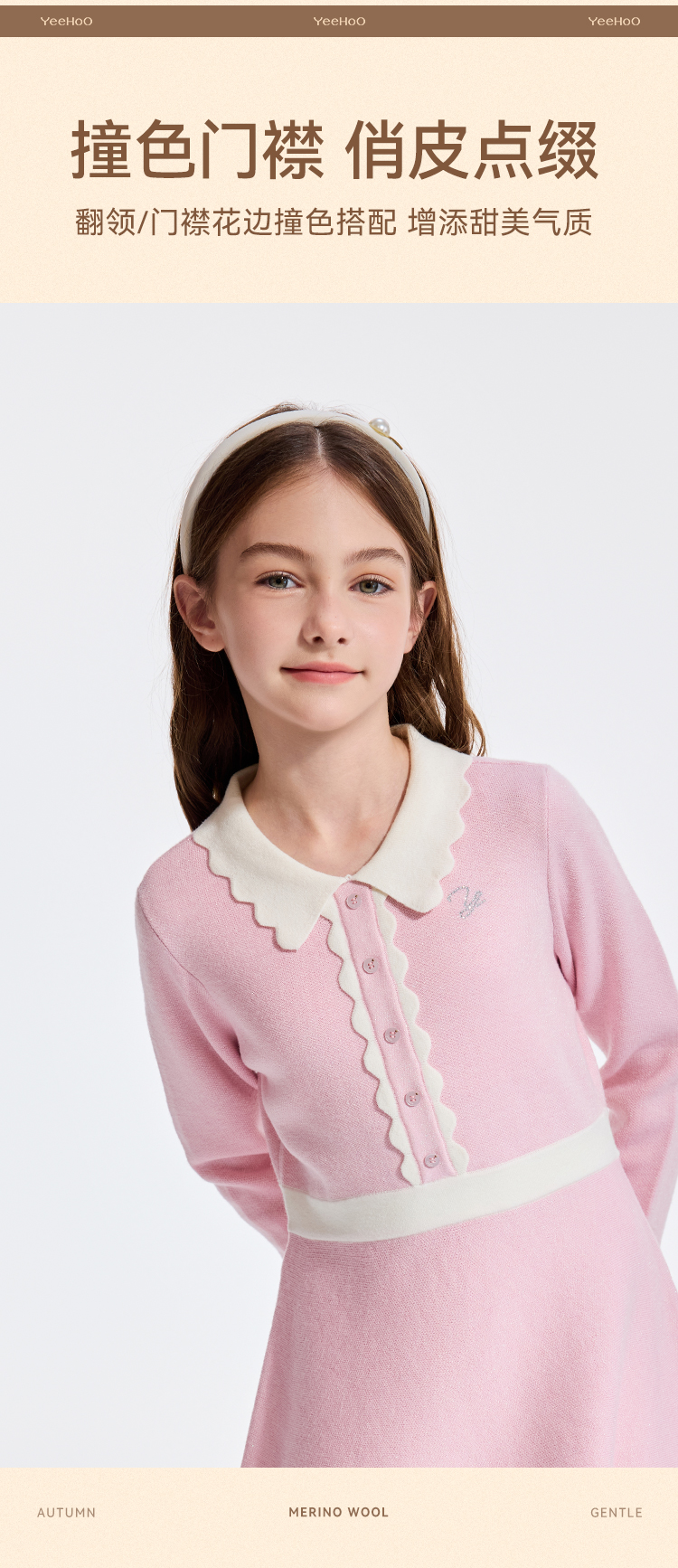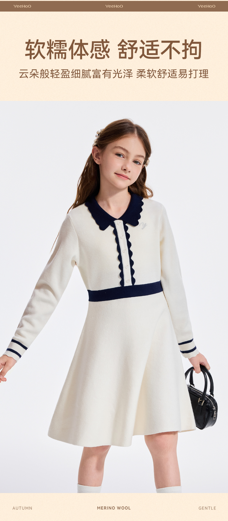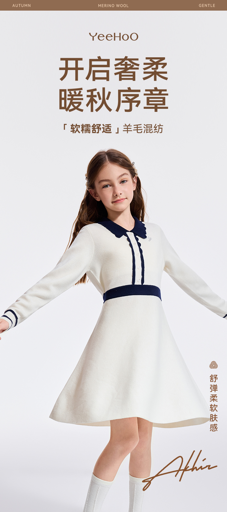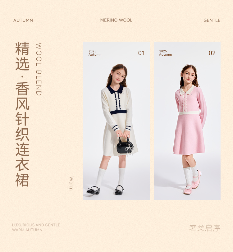 【英氏】【110-170】女童秋冬针织连衣裙