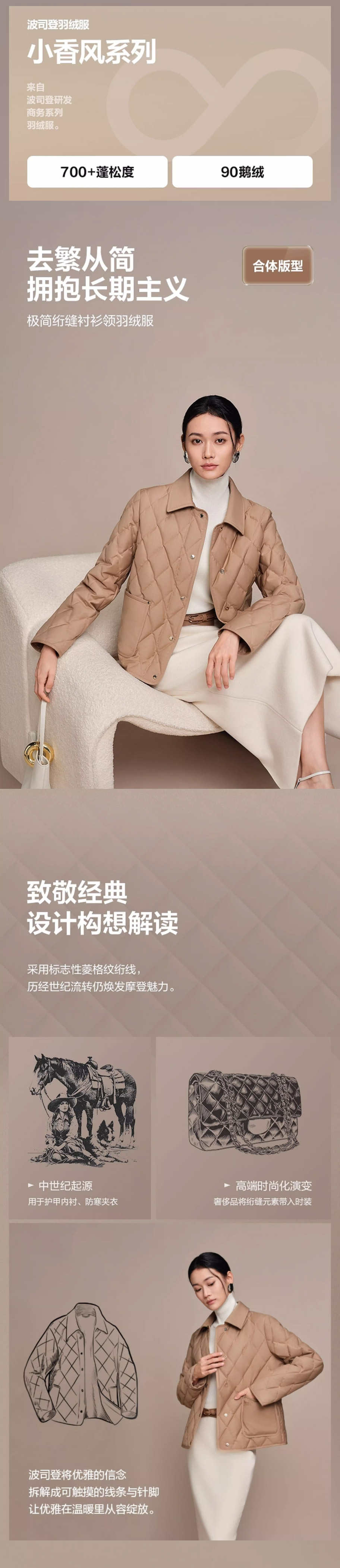 波司登90鹅绒2025秋季新款女短款极简小香风时尚羽绒服B250134182