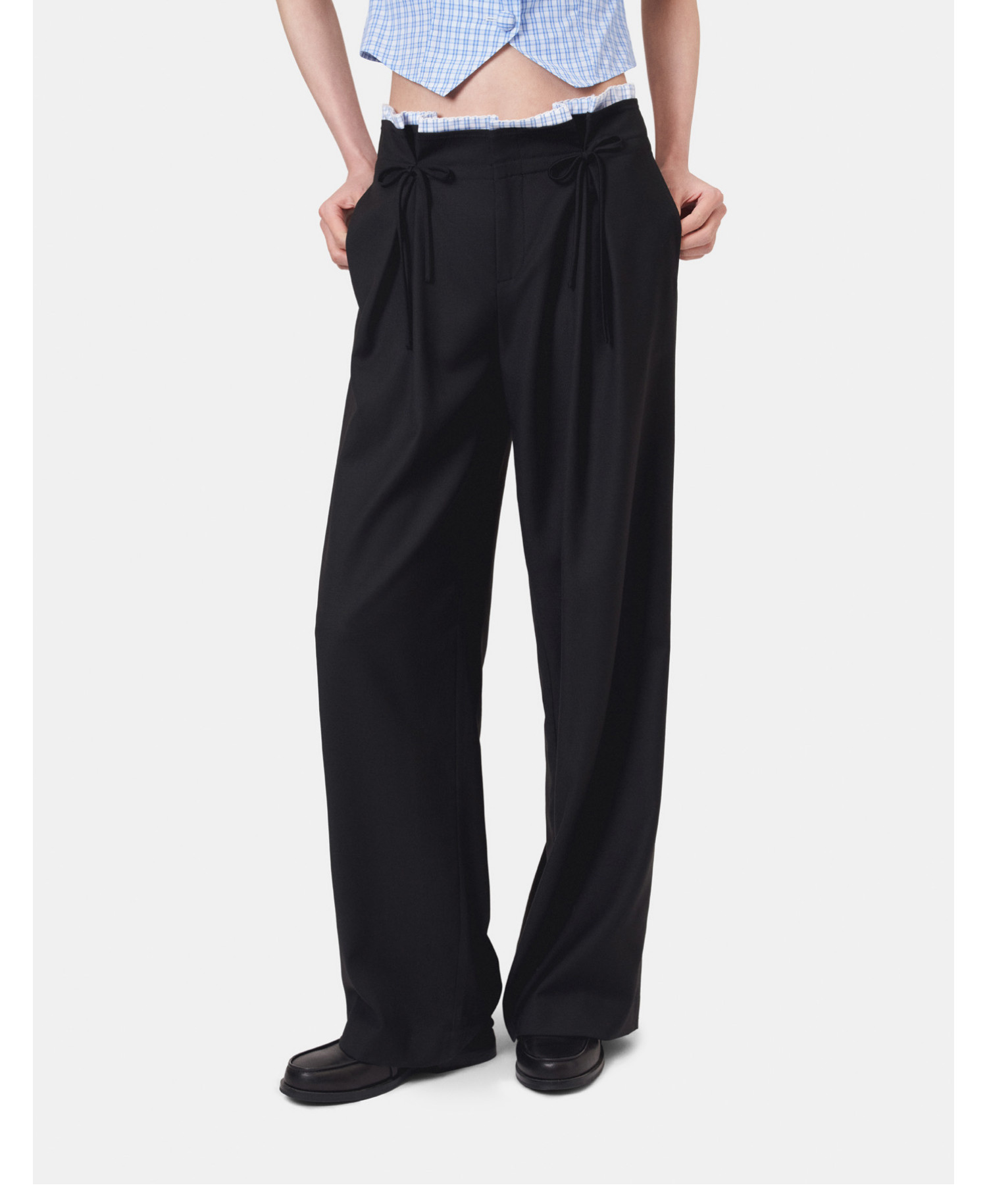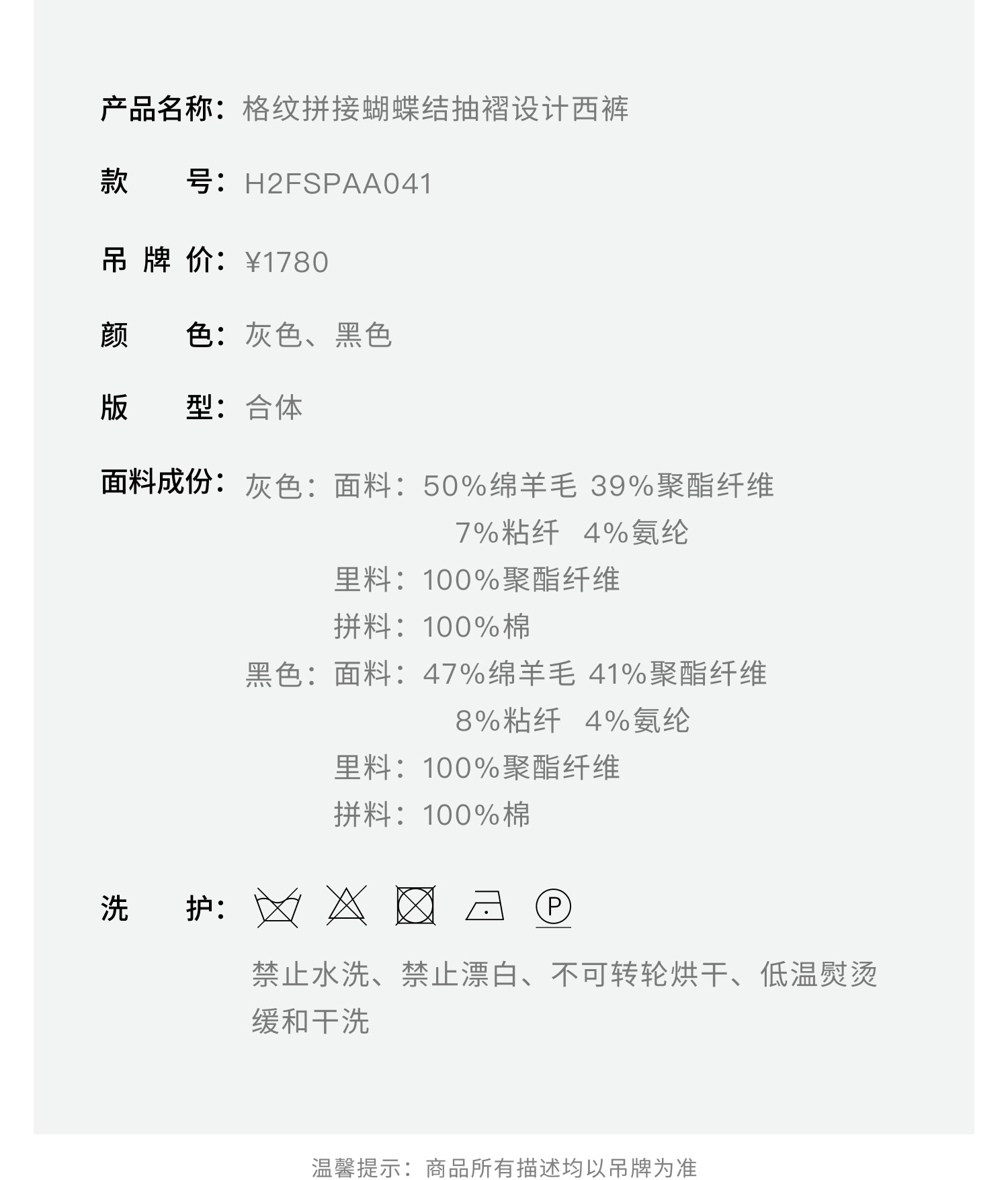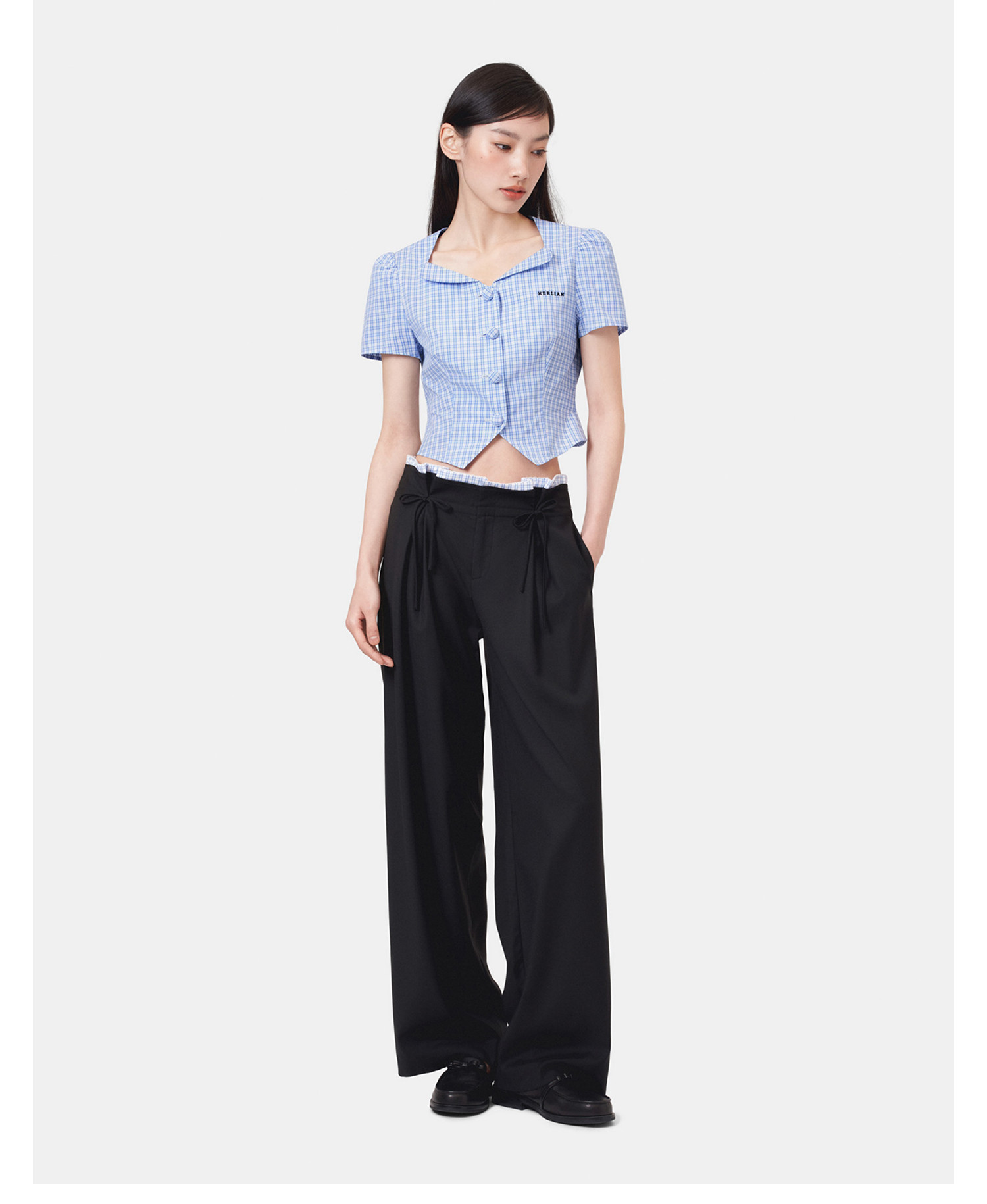 HERLIAN 2026年春季新品格纹拼接蝴蝶结抽褶设计西装裤直筒长裤