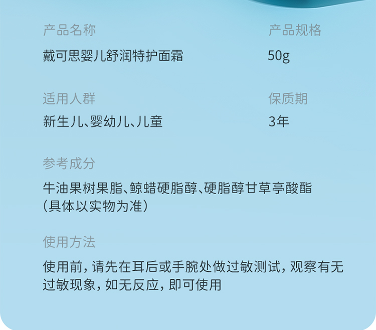 戴可思婴儿舒润特护霜敏弱肌面霜舒缓润肤乳滋润补水保湿霜♥