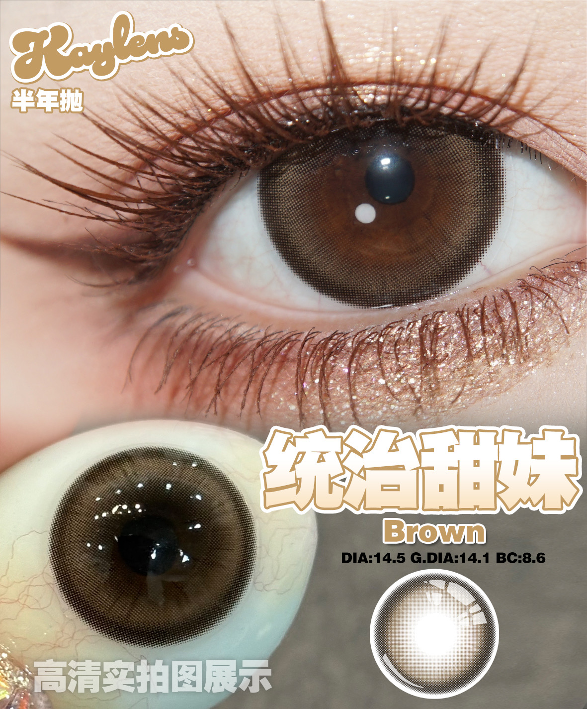 kaylens 半年抛 心动来电/统治甜妹 棕巧 14.5mm 着色14.1