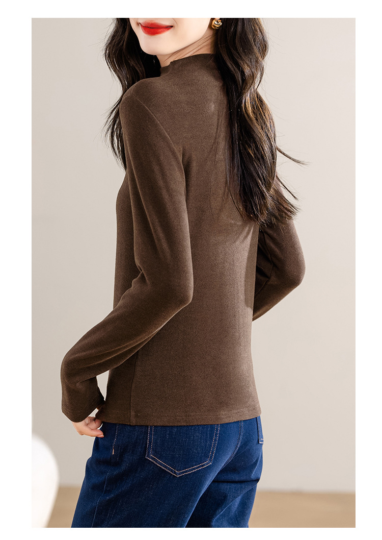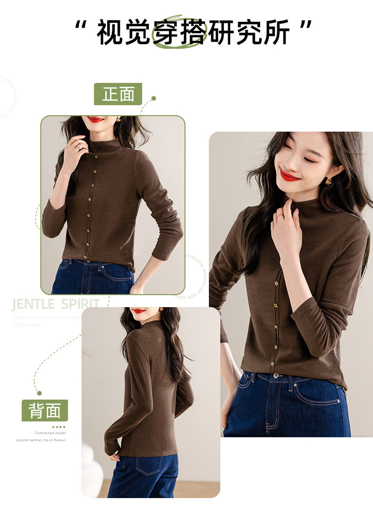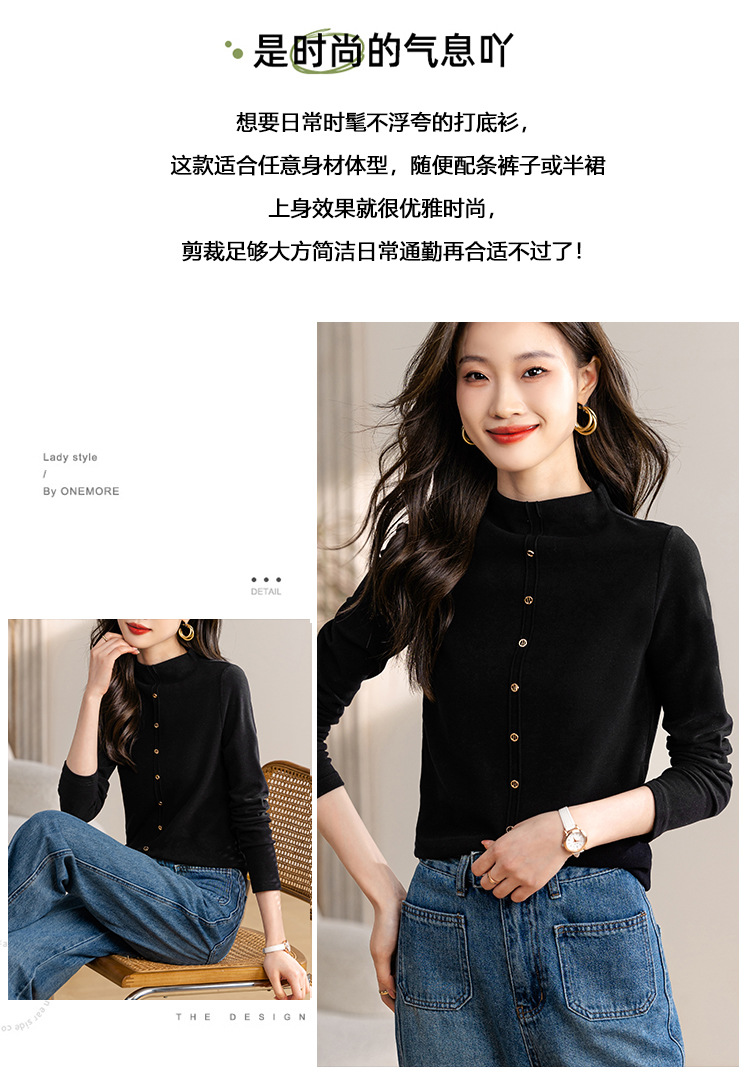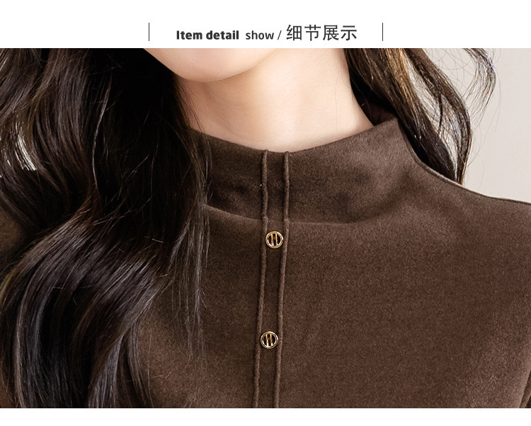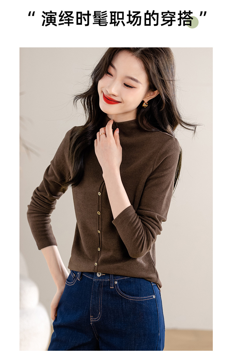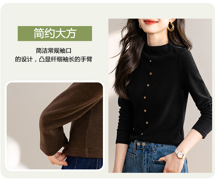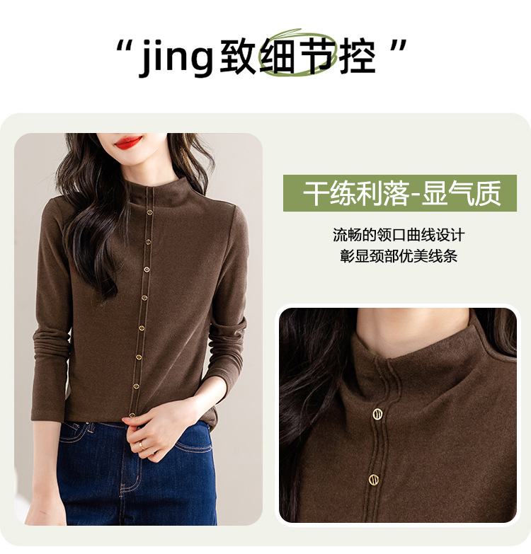 舒适内搭,秋冬温暖绵软双面德绒通勤t恤女半高领加厚打底衫女上衣KQL-645T8525