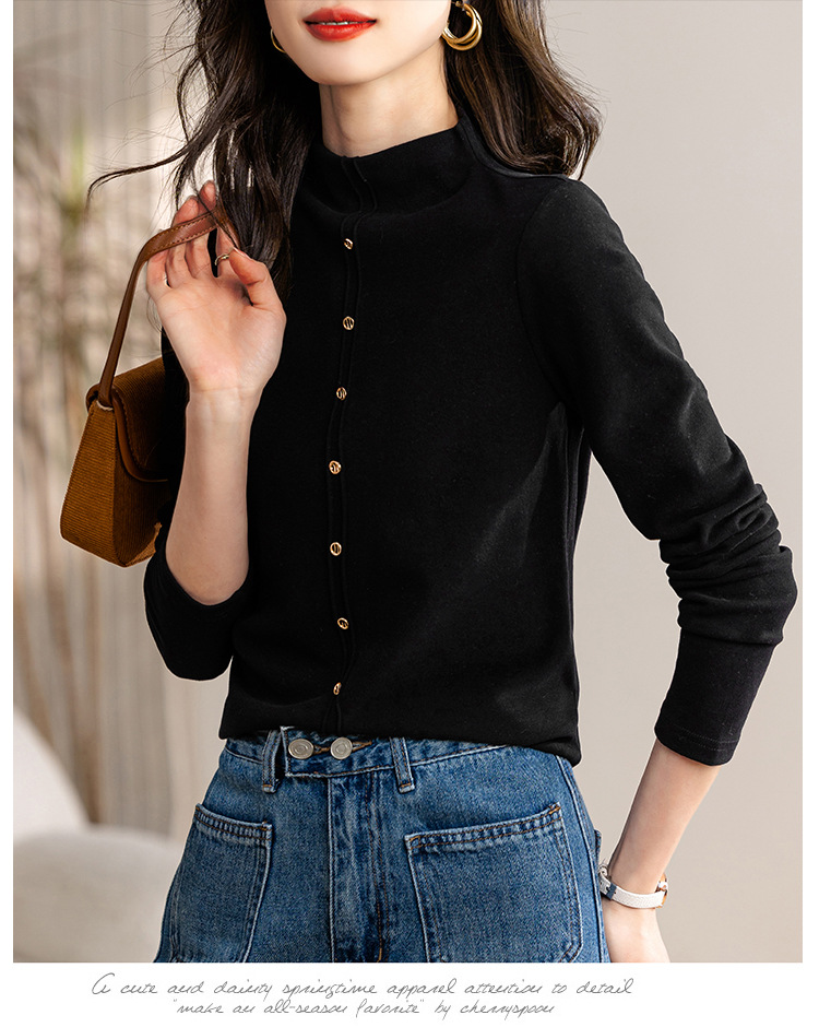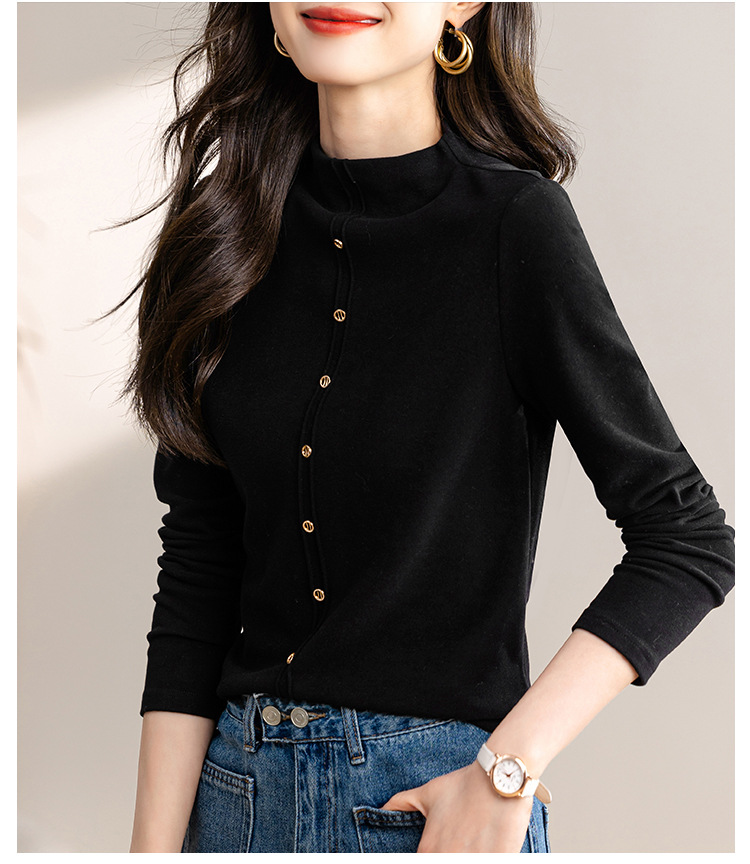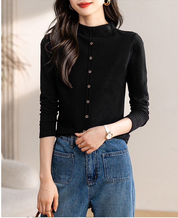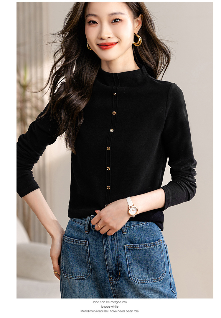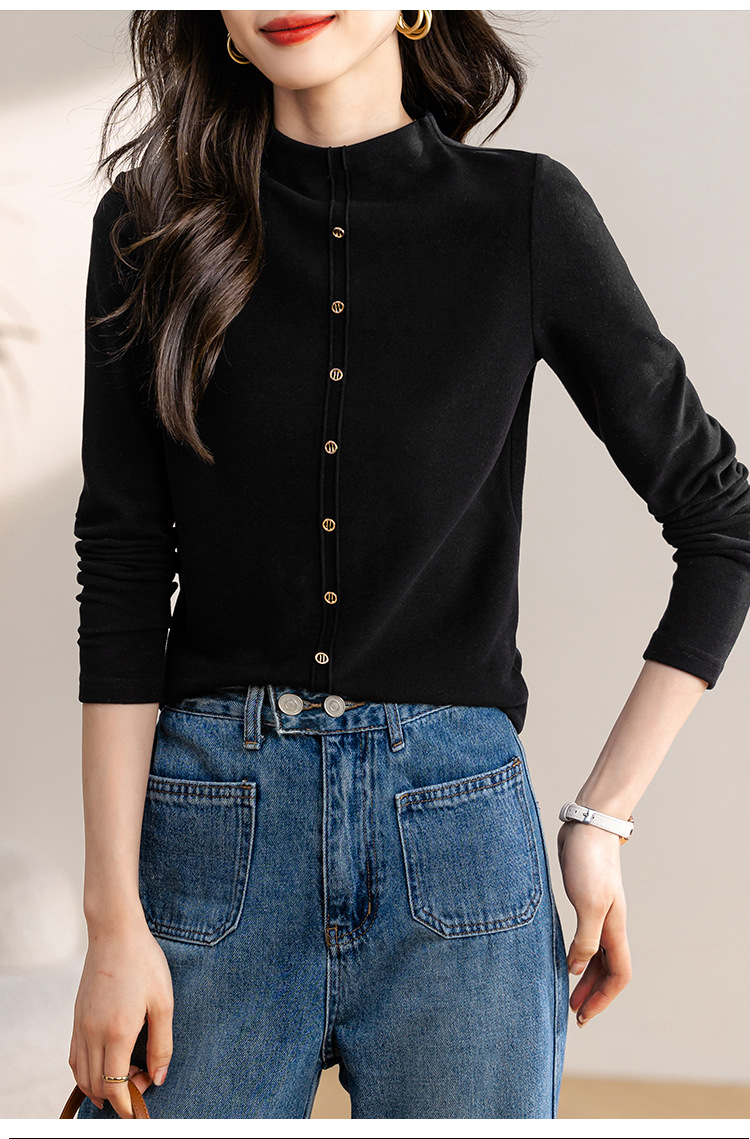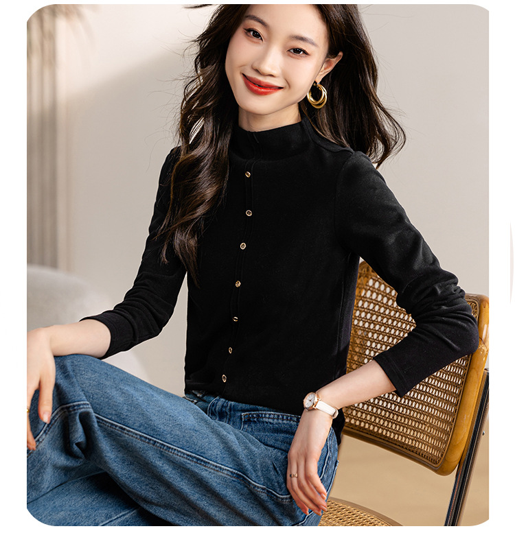 舒适内搭,秋冬温暖绵软双面德绒通勤t恤女半高领加厚打底衫女上衣KQL-645T8525