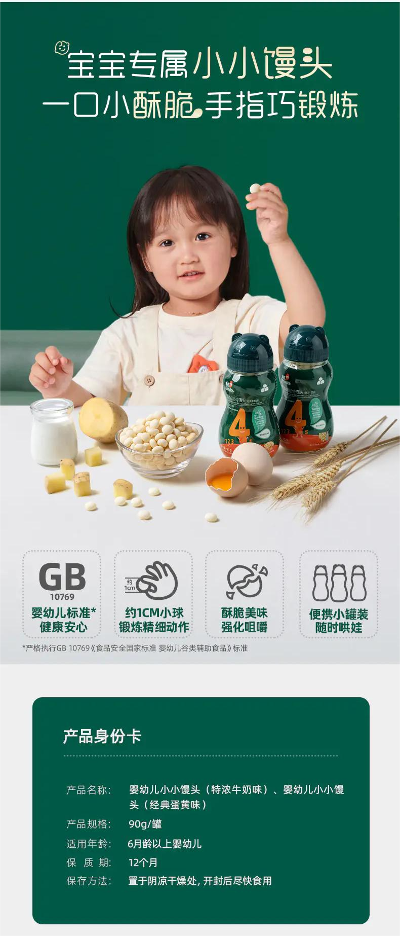 【138元任选7件】英氏4阶小馒头 奶豆入口易化 牛奶味/蛋黄味 90克/罐