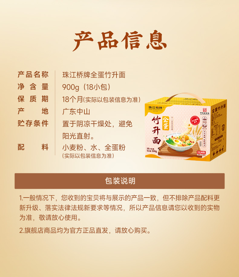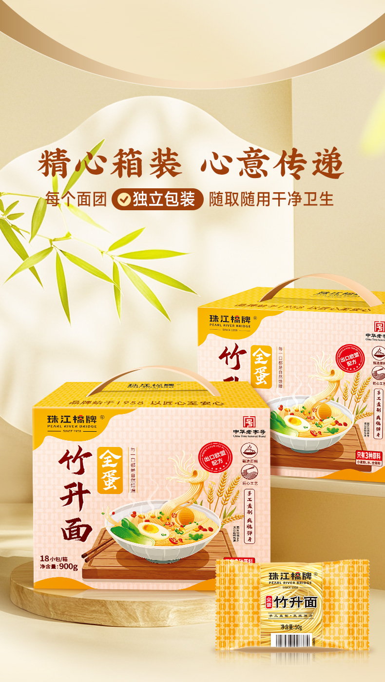 珠江桥牌 全蛋竹升面900g (80gx15小包)