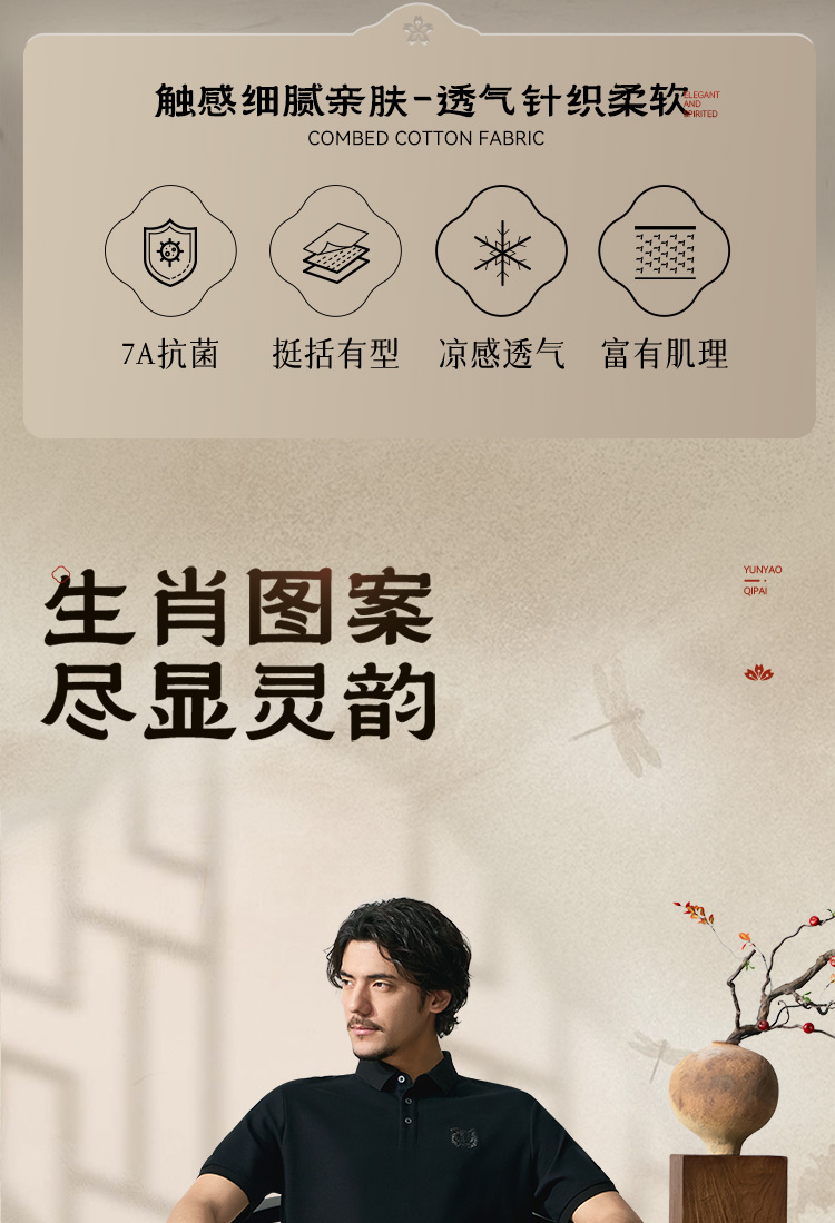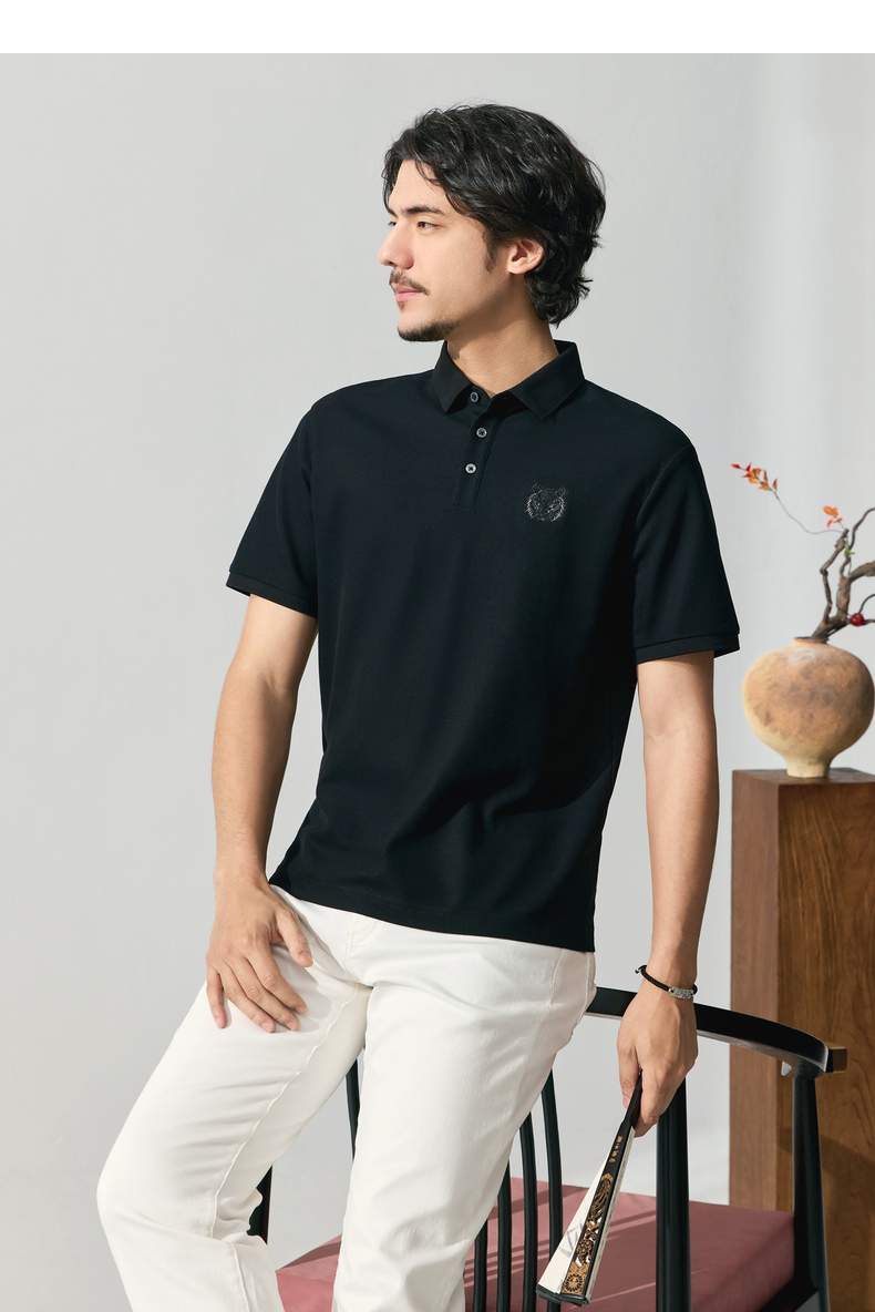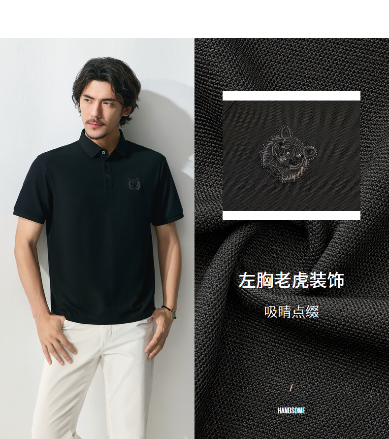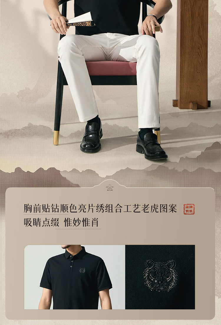 【十二生肖剪纸虎】柒牌短袖Polo衫男夏季凉感老虎图案休闲T恤衫128T72380