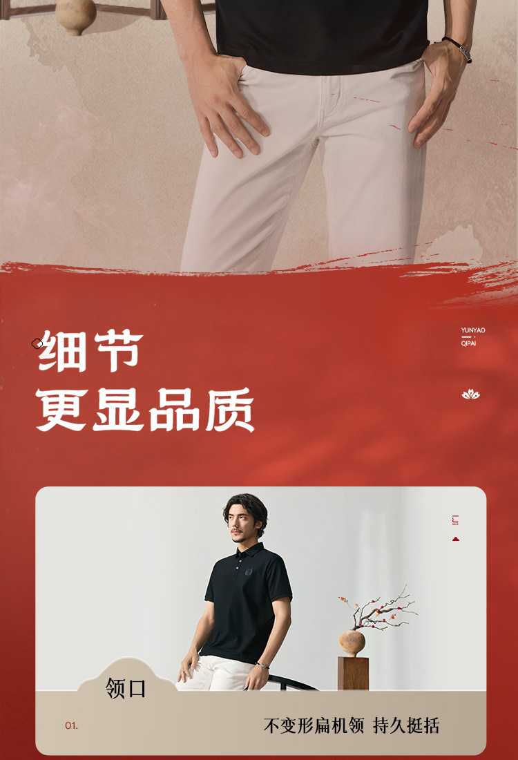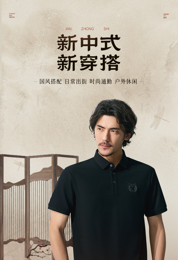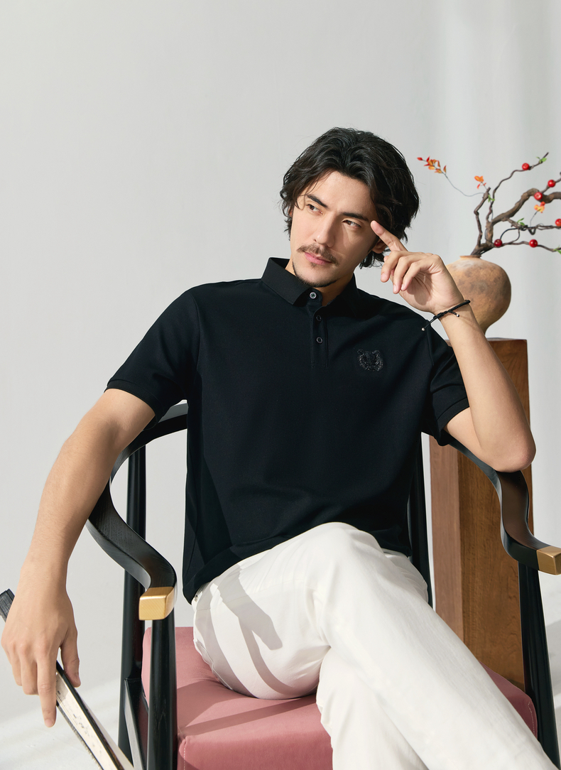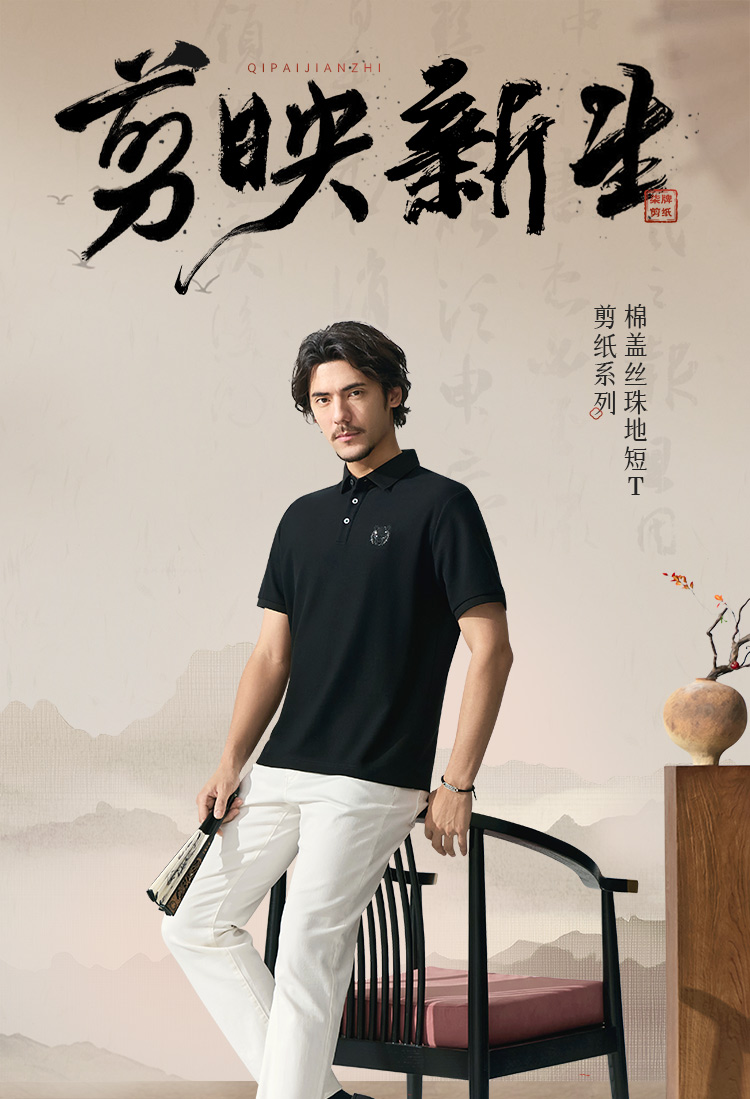 【十二生肖剪纸虎】柒牌短袖Polo衫男夏季凉感老虎图案休闲T恤衫128T72380