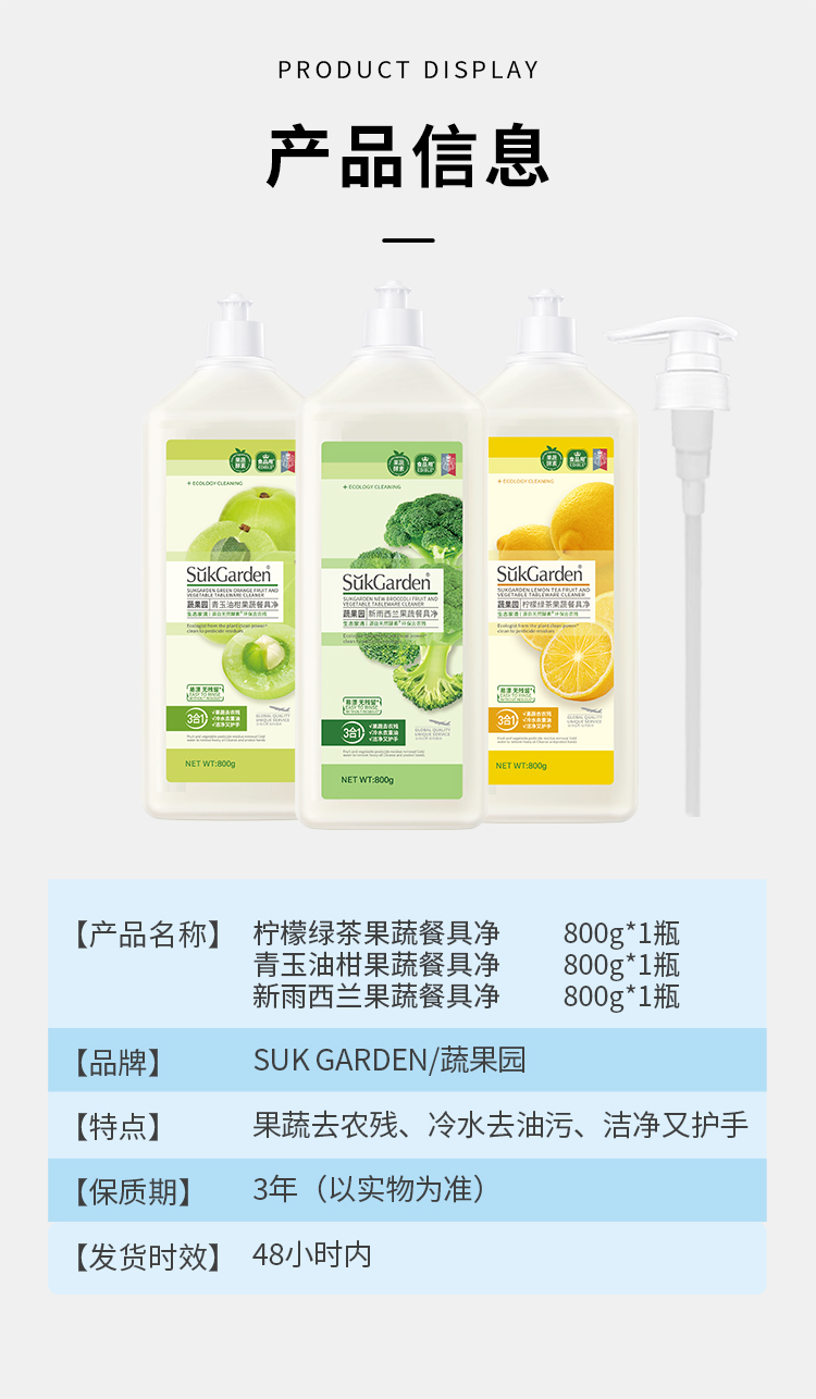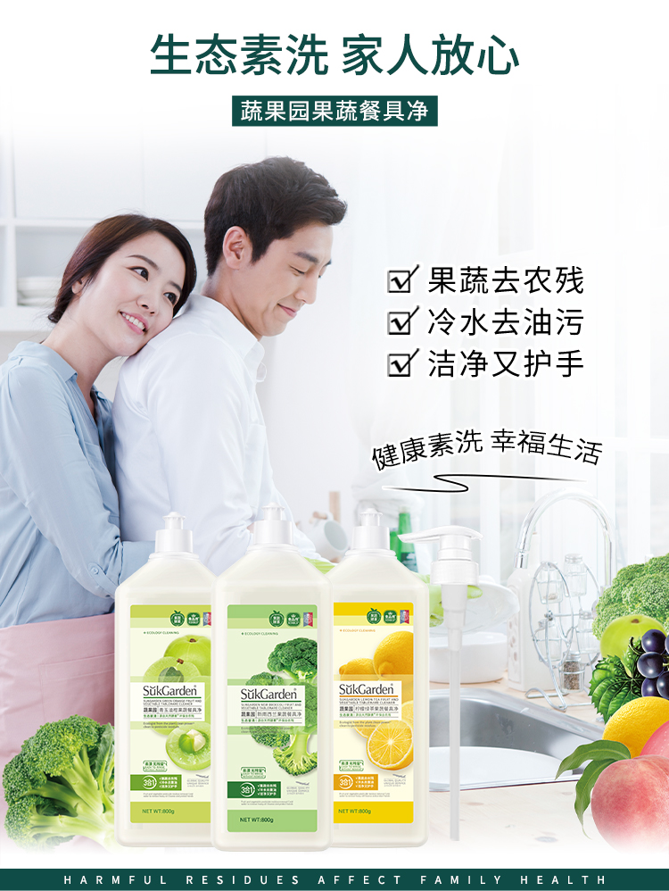 【蔬果园果蔬餐具净】 大桶洗洁精冷水去油清新水果味家庭装洗碗液