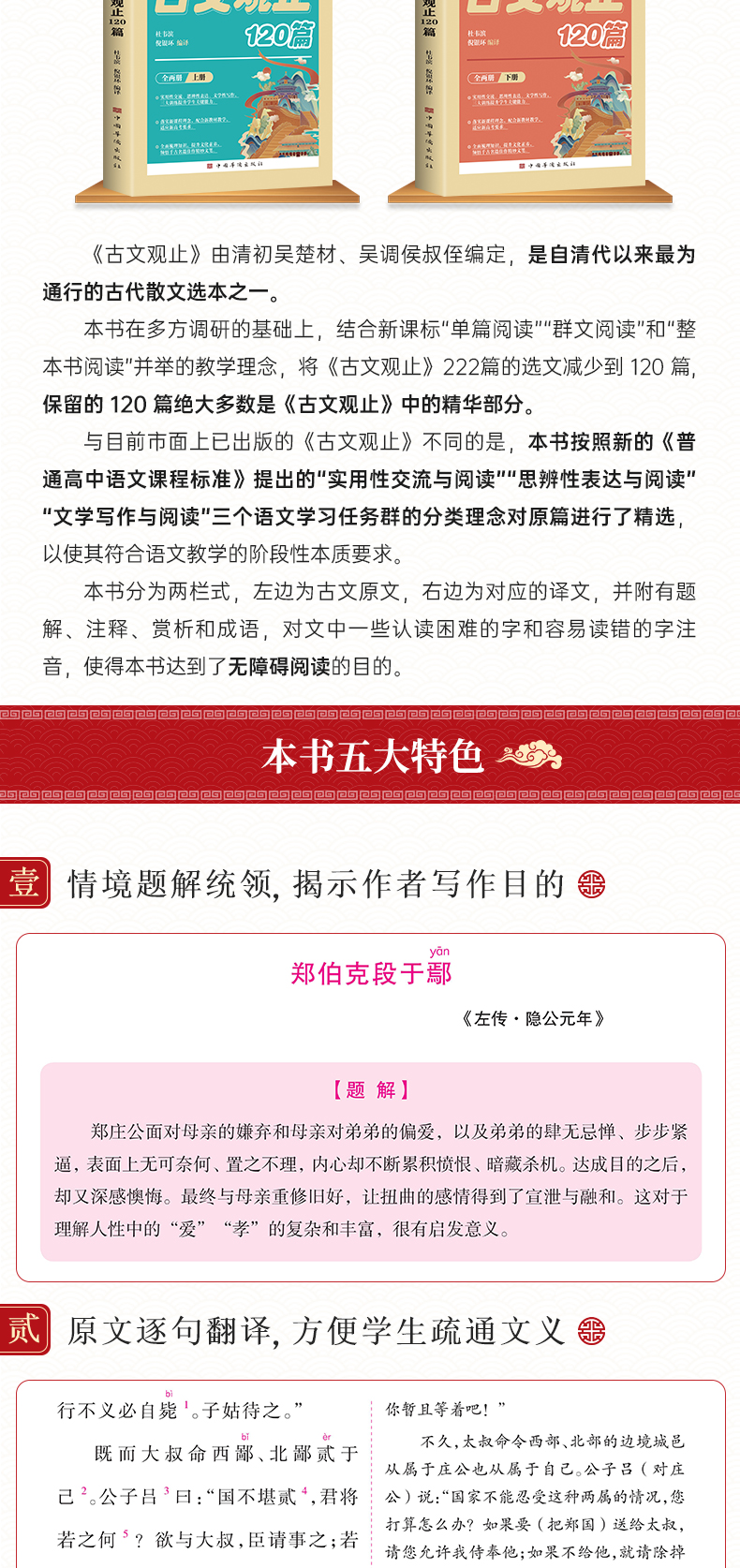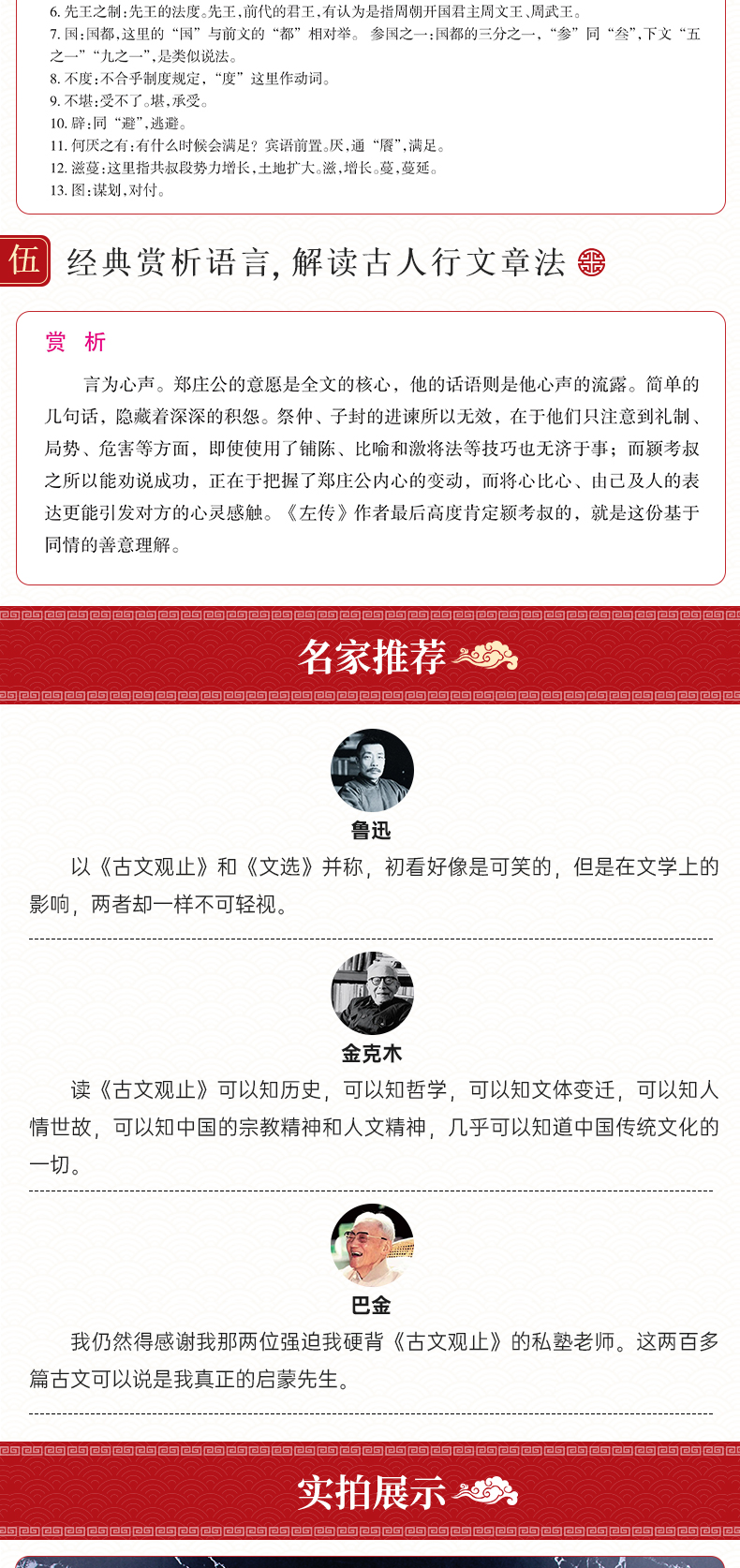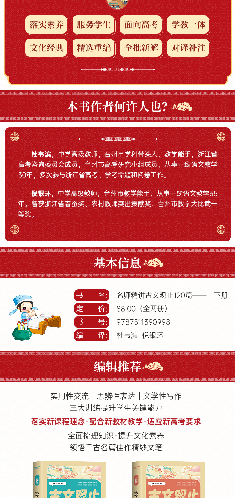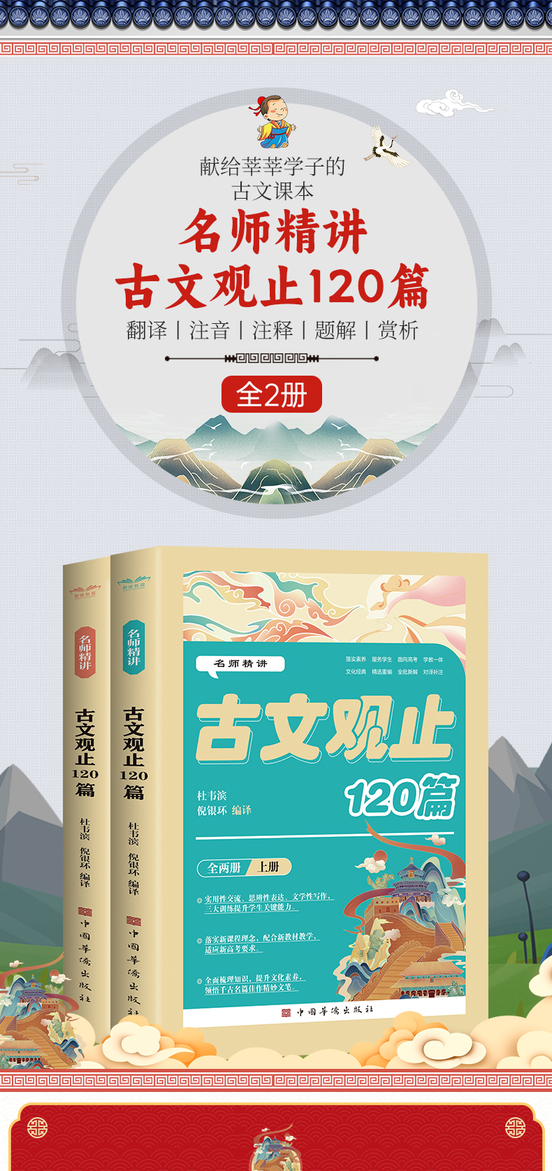 名师精讲古文观止120篇上下全2册初中小学生必背古诗文文言文课外语文知识读物落实素养学教一体文化经典精选重编全批新解对译补注