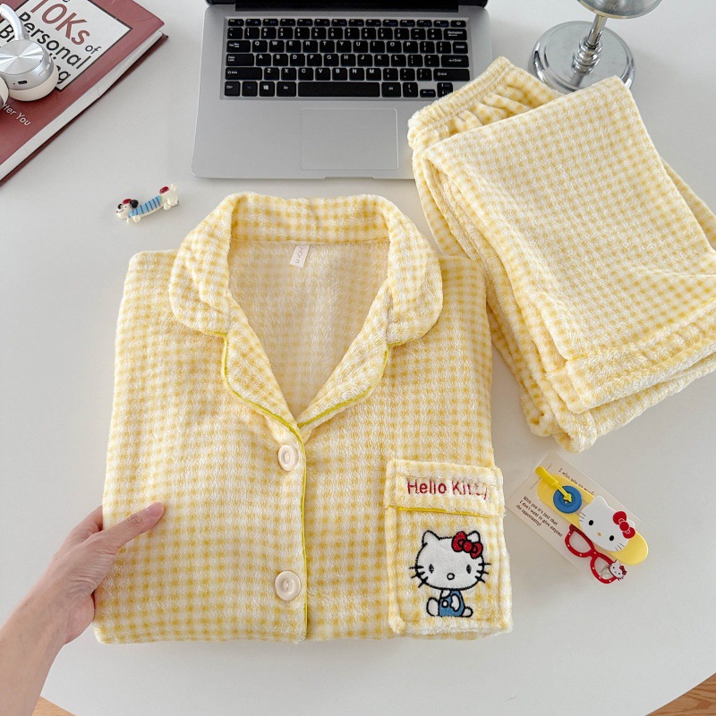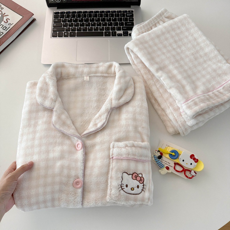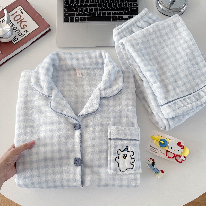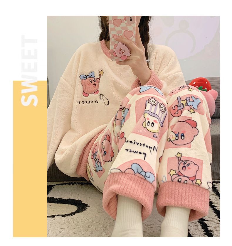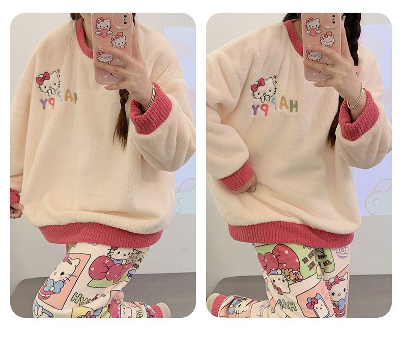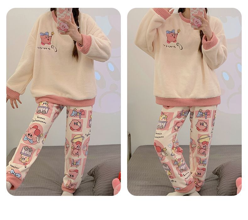 秋冬季【珊瑚绒睡衣女】新款波点可爱卡通 少女法兰绒加绒加厚套装