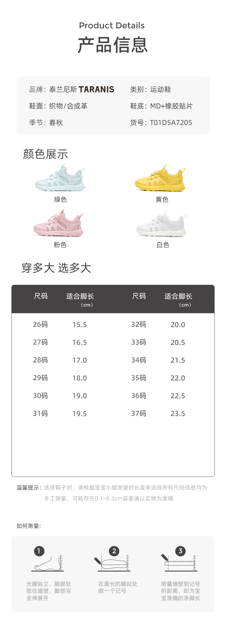 泰兰尼斯春款中大童超轻户外网面运动鞋T01D5A7205