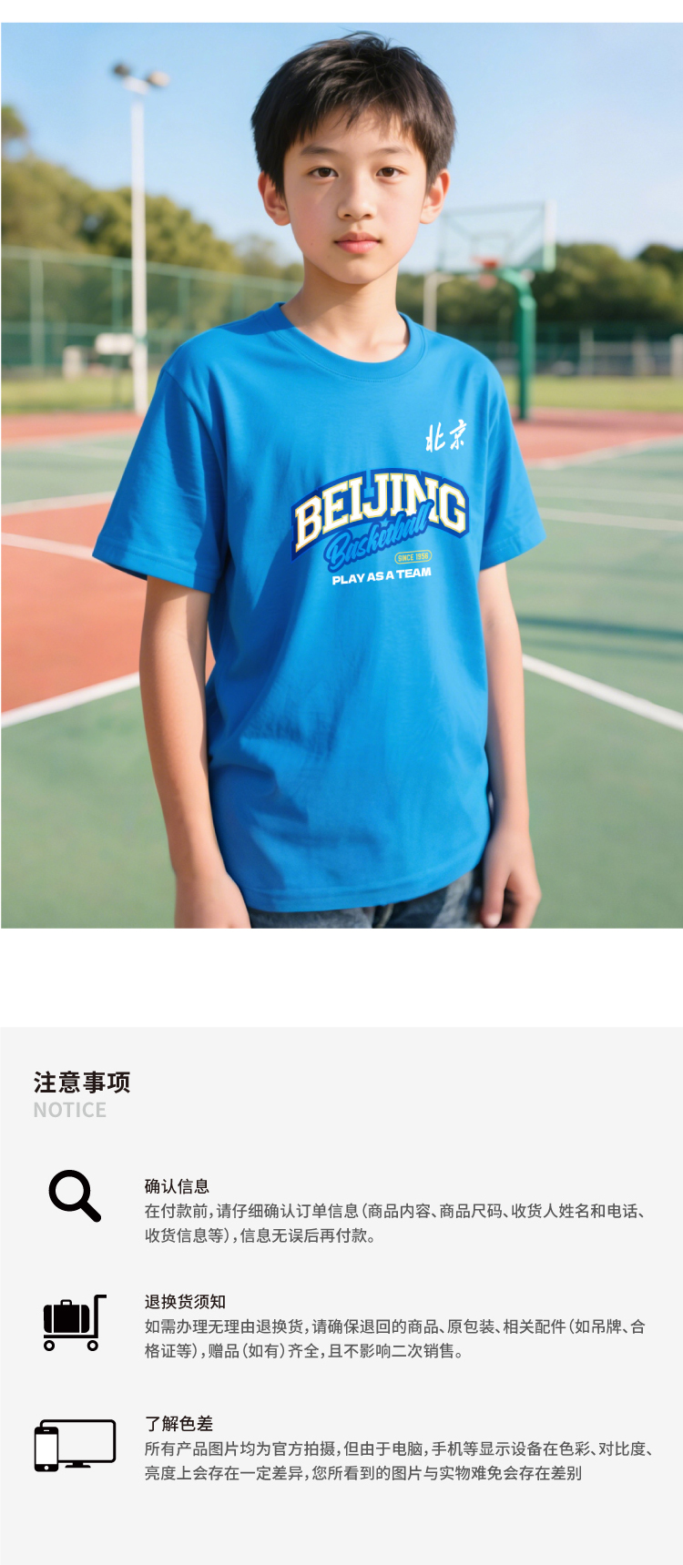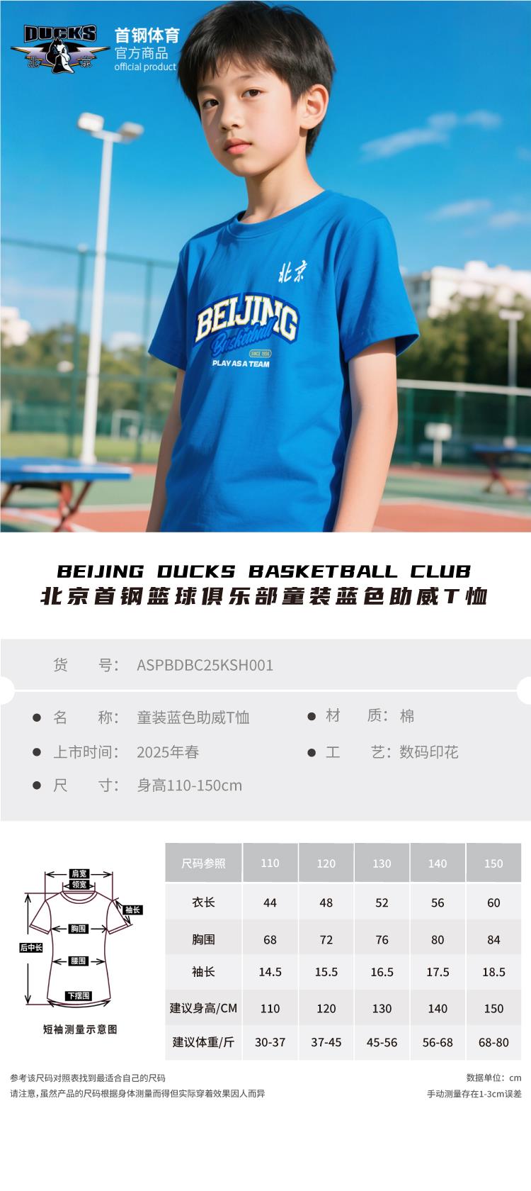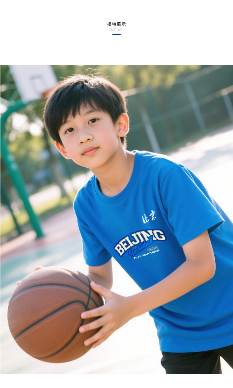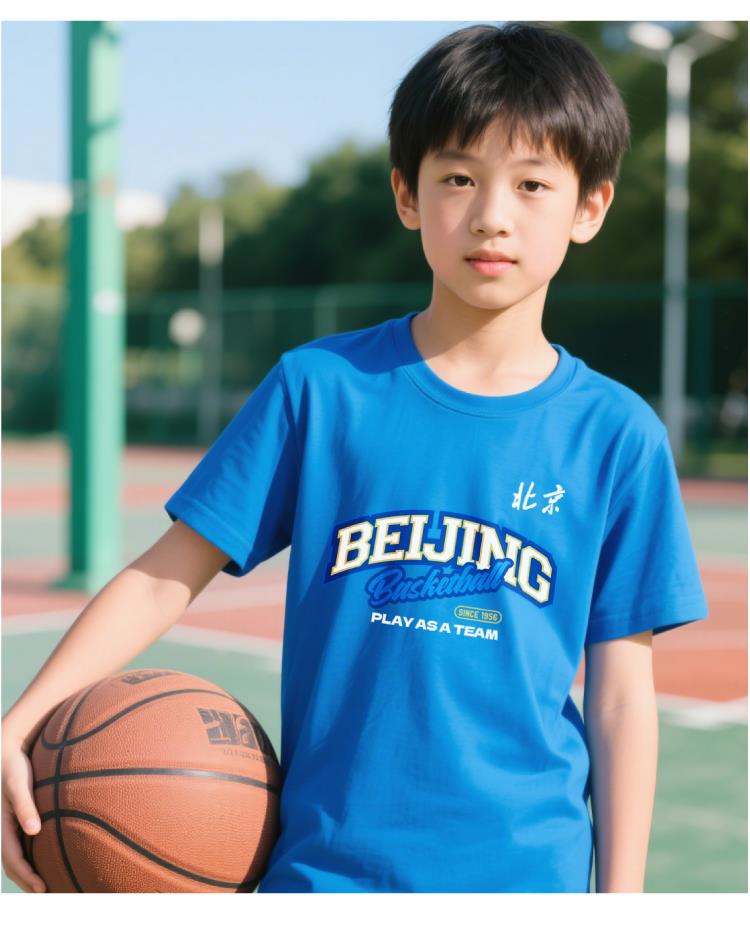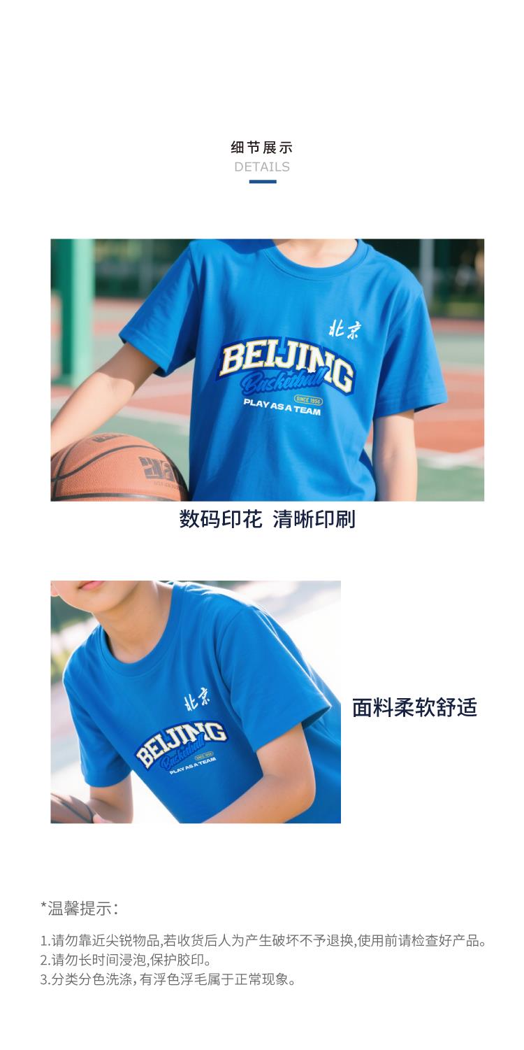 【官方正版】北京首钢篮球俱乐部 | 童装蓝色助威T恤印花设计夏季透气短袖