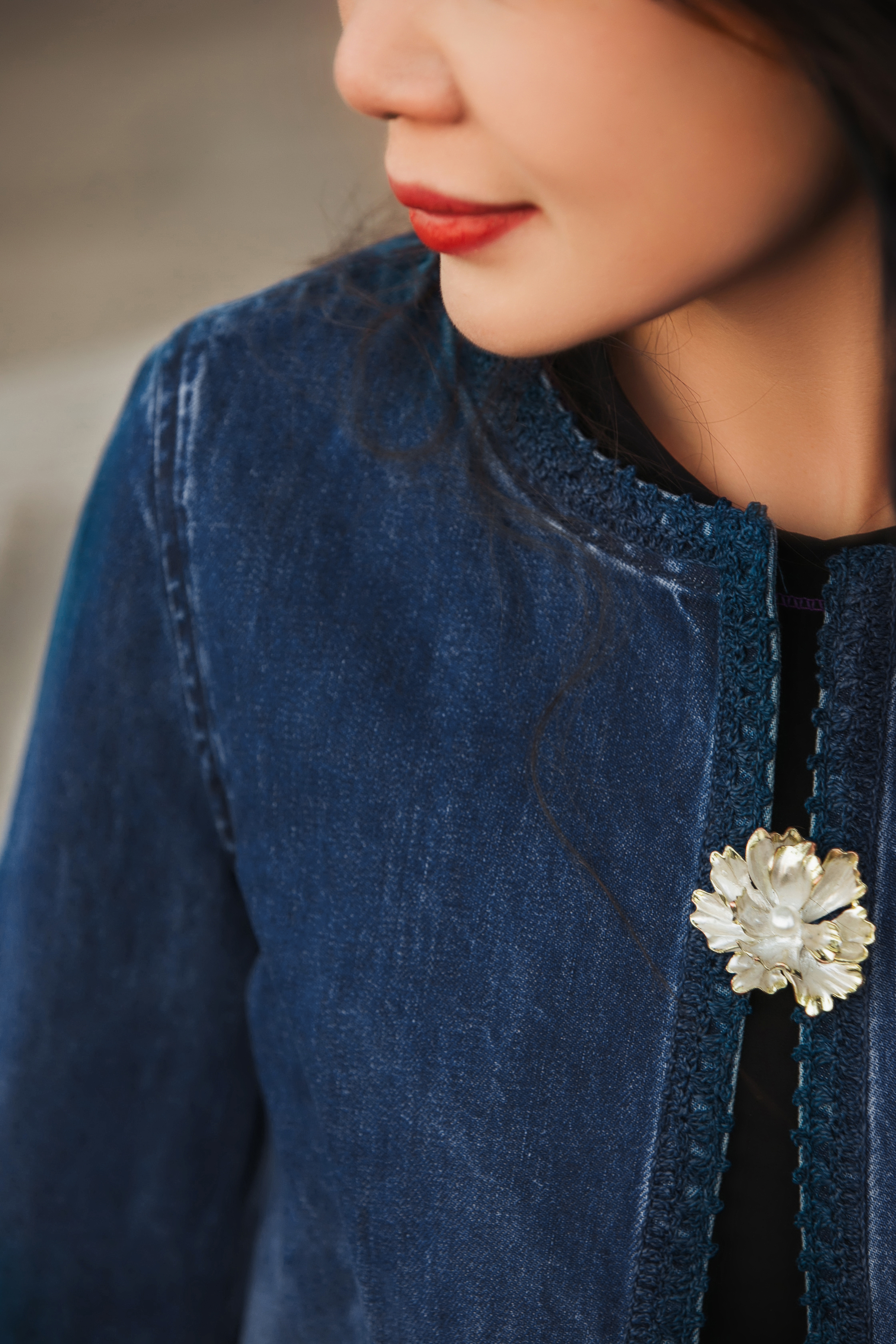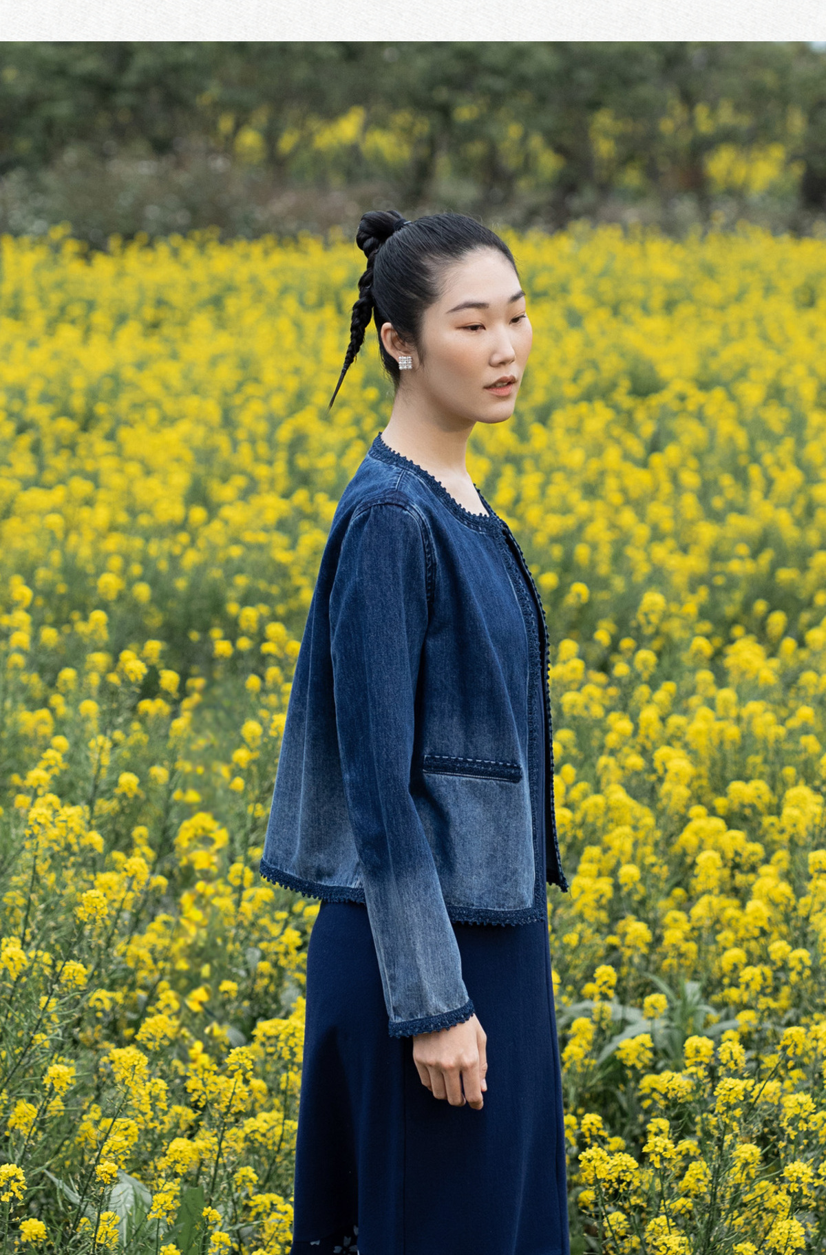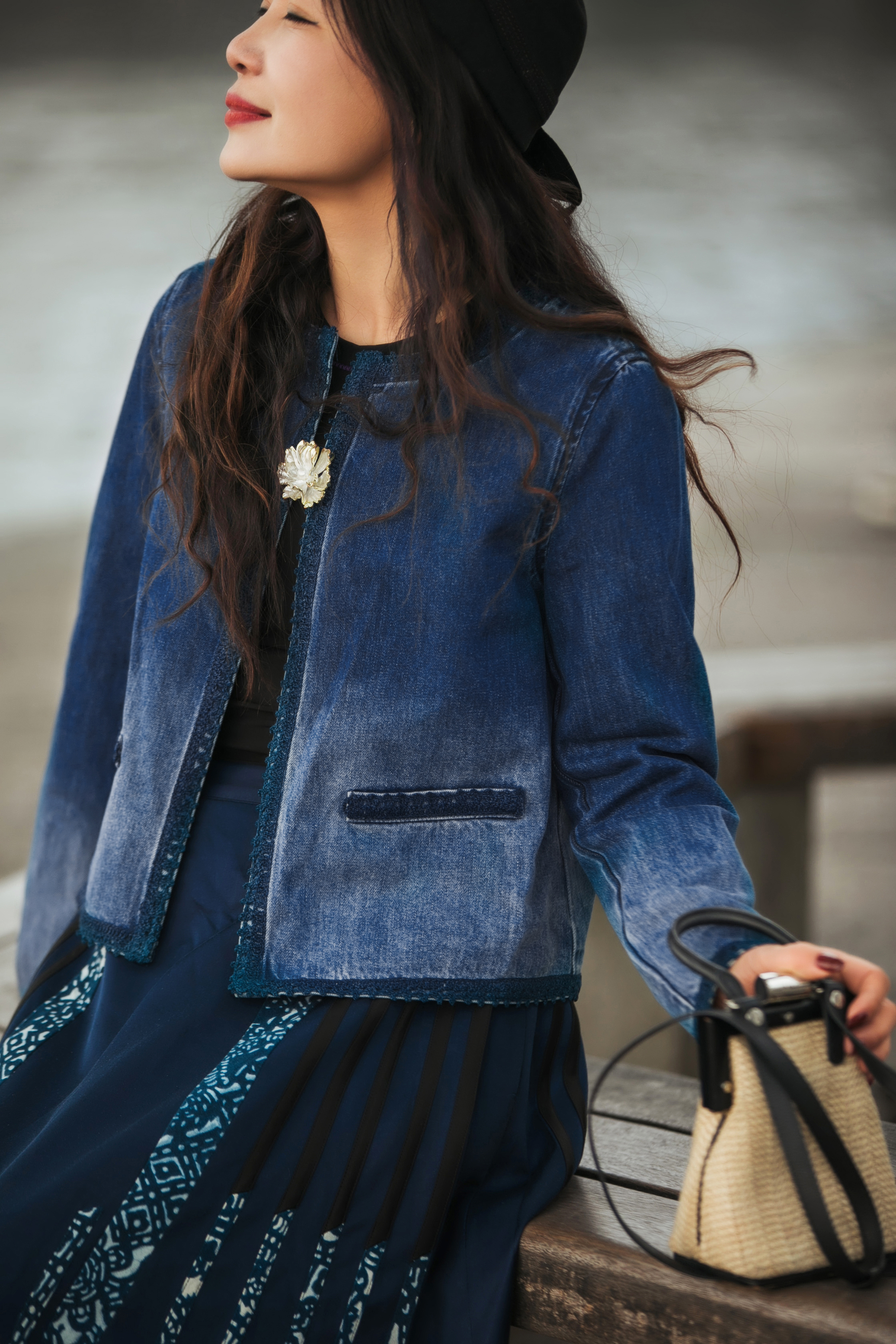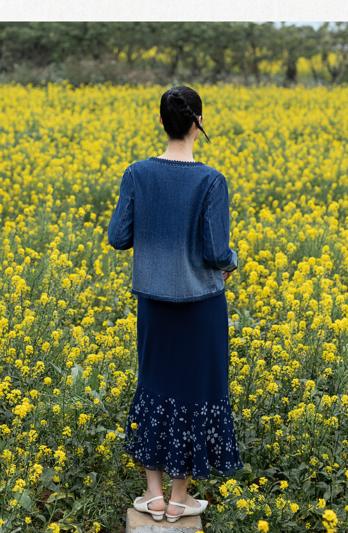 【林栖设计小店】(现货)外套上衣复古牛仔蓝渐变2024春夏新品长袖上衣女1942182