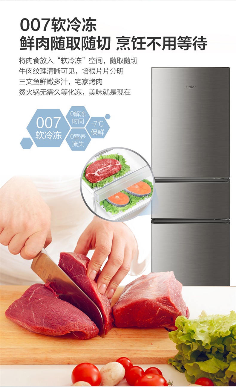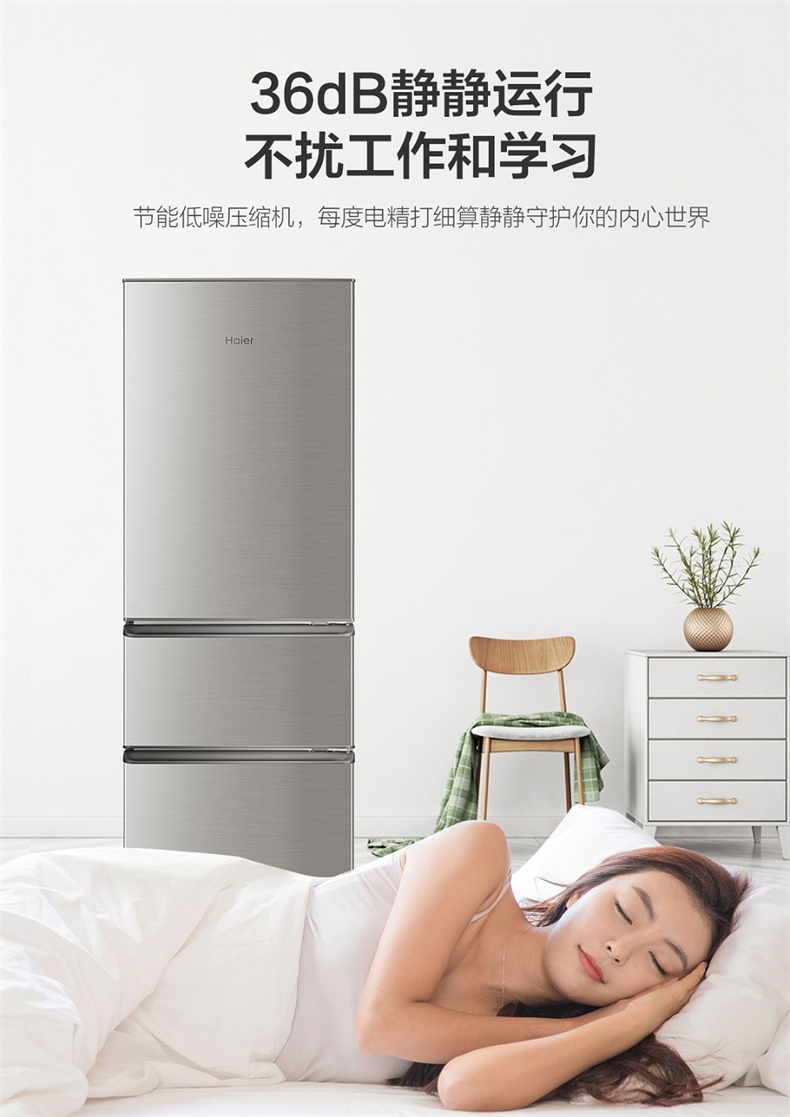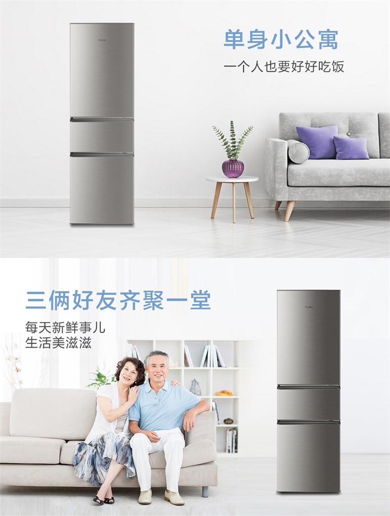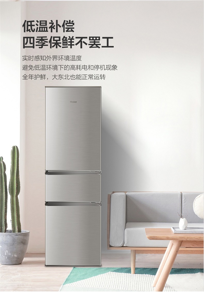 海尔(Haier)三门小型家用宿舍租房冷藏冷冻小冰箱 海尔215升