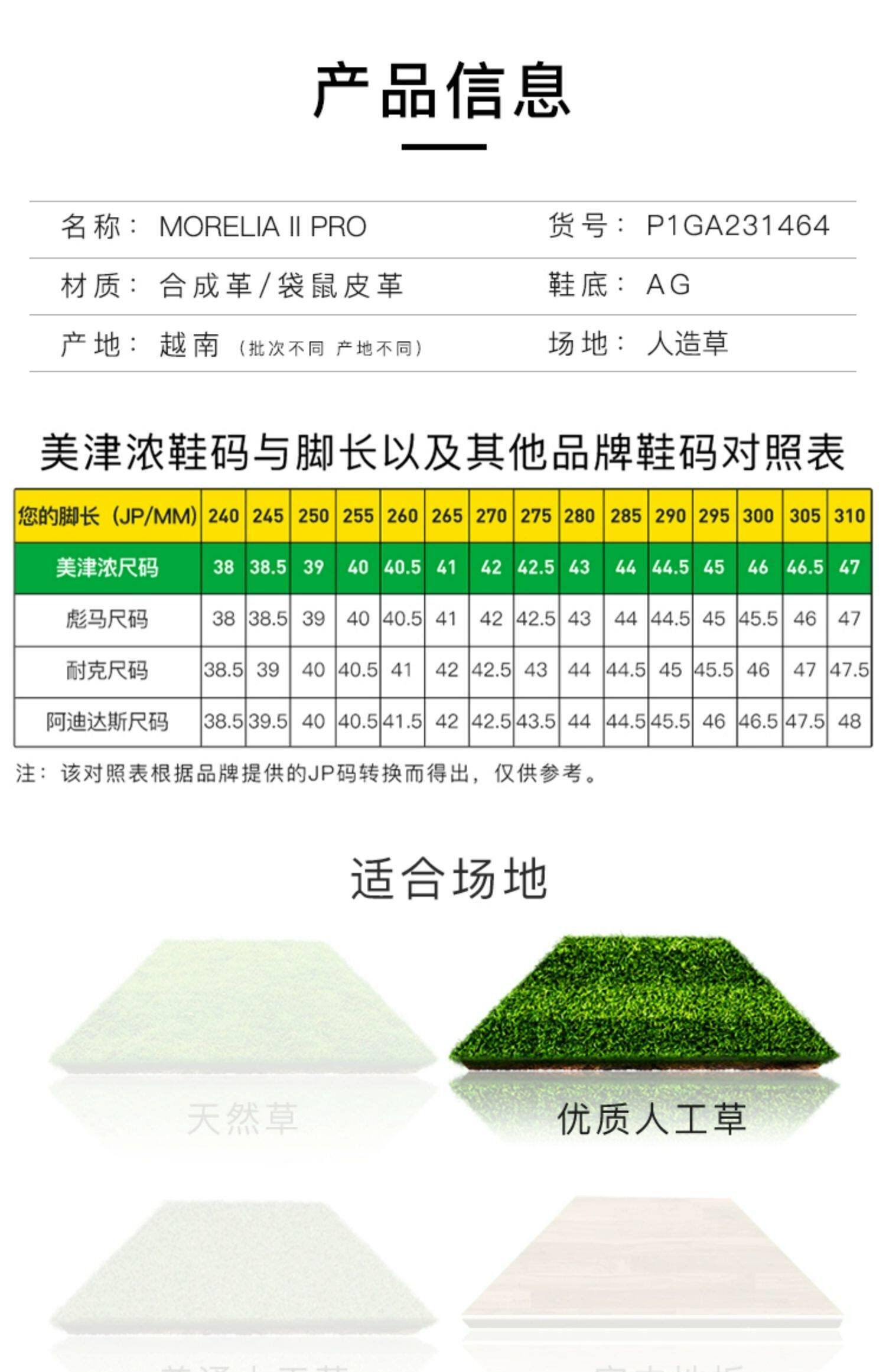 Mizuno/美津浓 MORELIA II PRO AG (Short Tongue/MS-092) 次高端 Morelia AG足球鞋