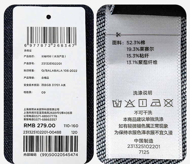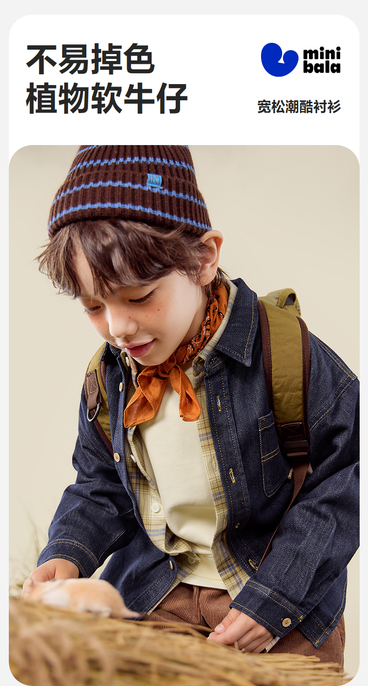 【软牛仔】迷你巴拉男女童衬衫儿童秋长袖透气柔软宝宝上衣