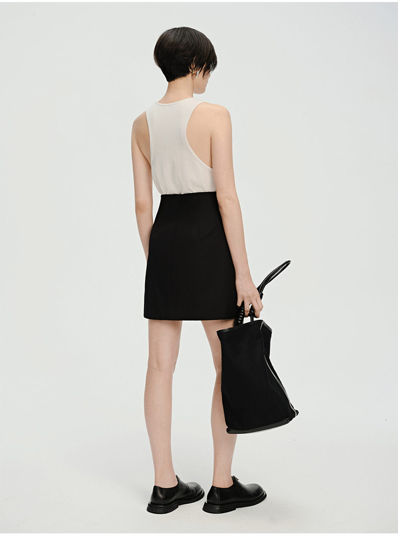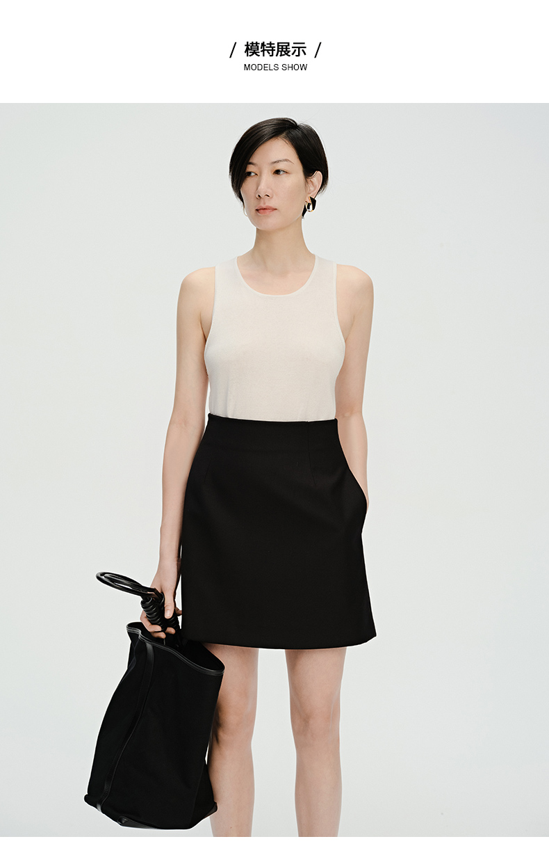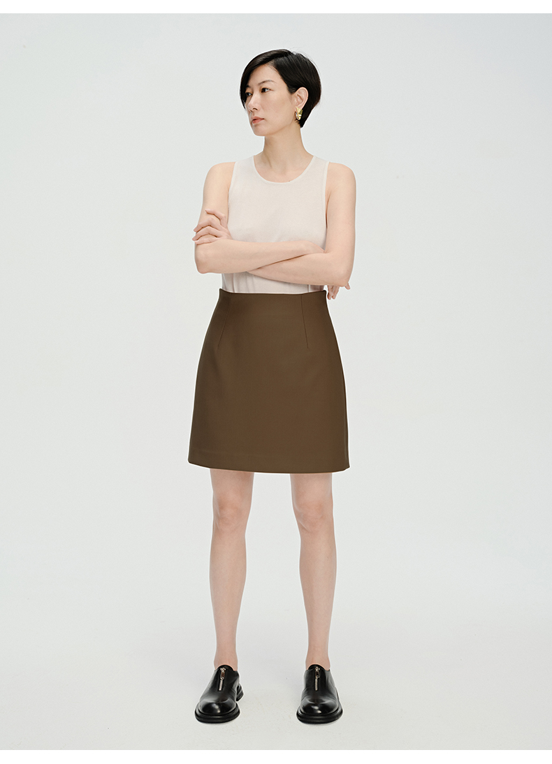 HIDEMI 到店必入A字型设计感简约户外显瘦修身气质半身短裙 黑色/卡其色/薰衣草紫/奶油白/马尔斯绿/摩卡棕
