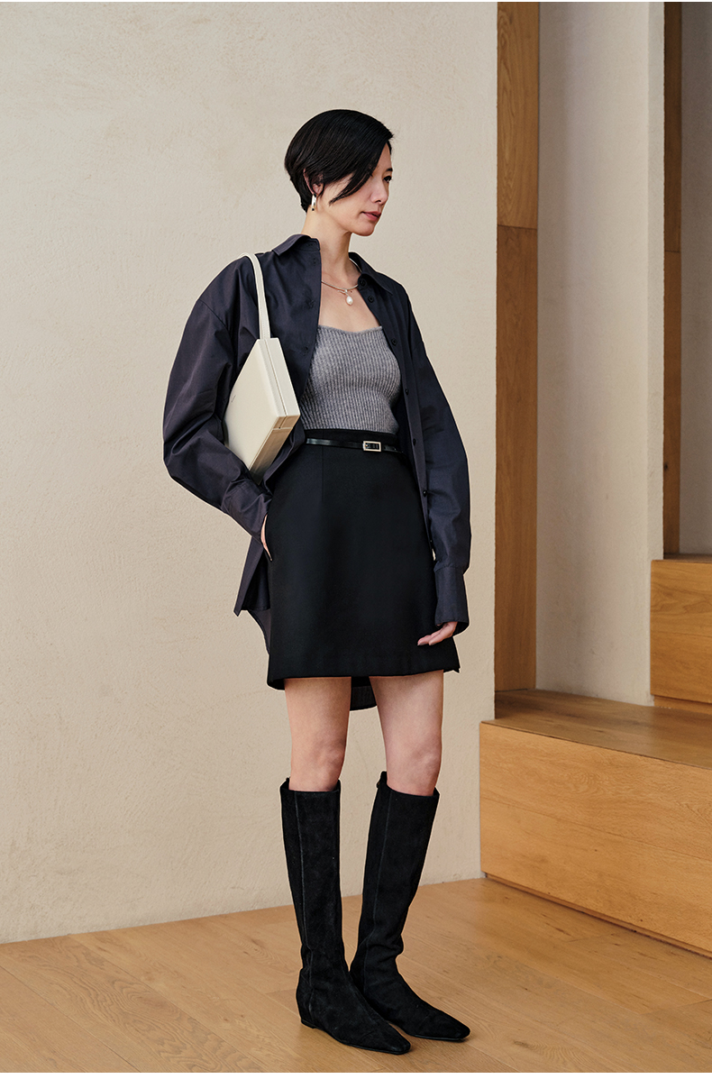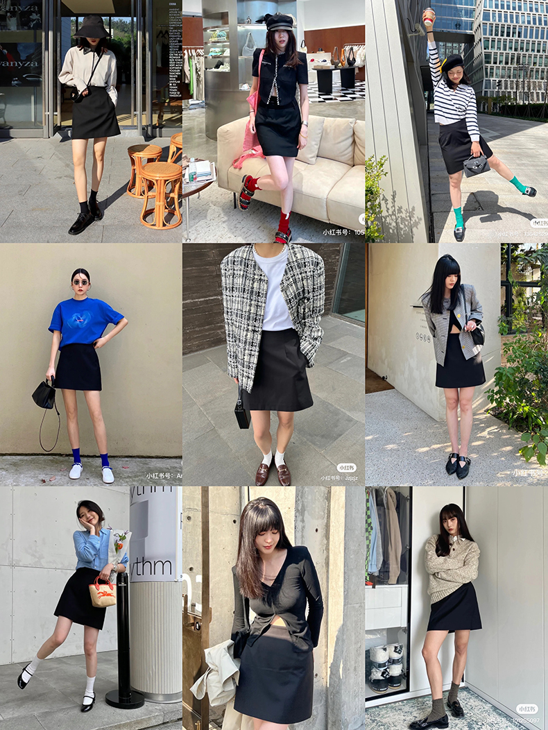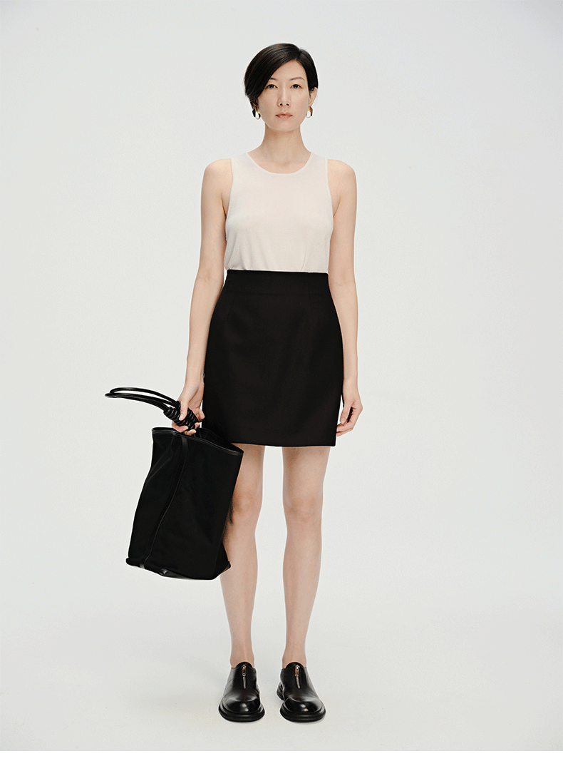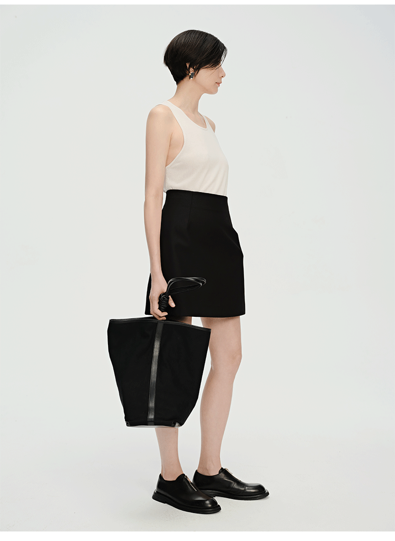 HIDEMI 到店必入A字型设计感简约户外显瘦修身气质半身短裙 黑色/卡其色/薰衣草紫/奶油白/马尔斯绿/摩卡棕