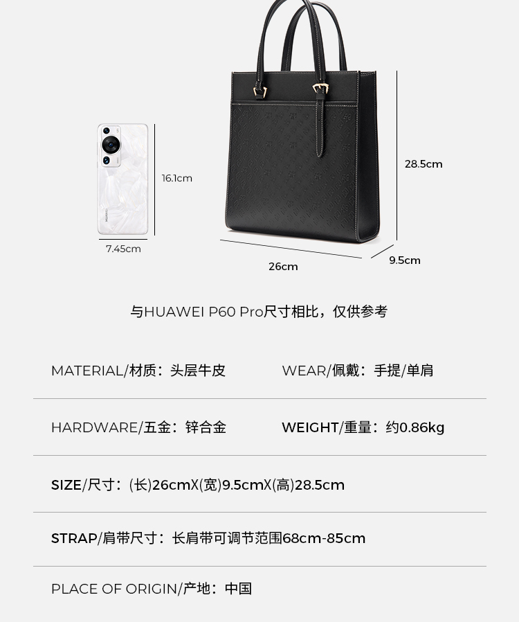 保兰德PLD东方雅奢经典系列加薪包2号单肩手提包托特包头层牛皮体制内中国包