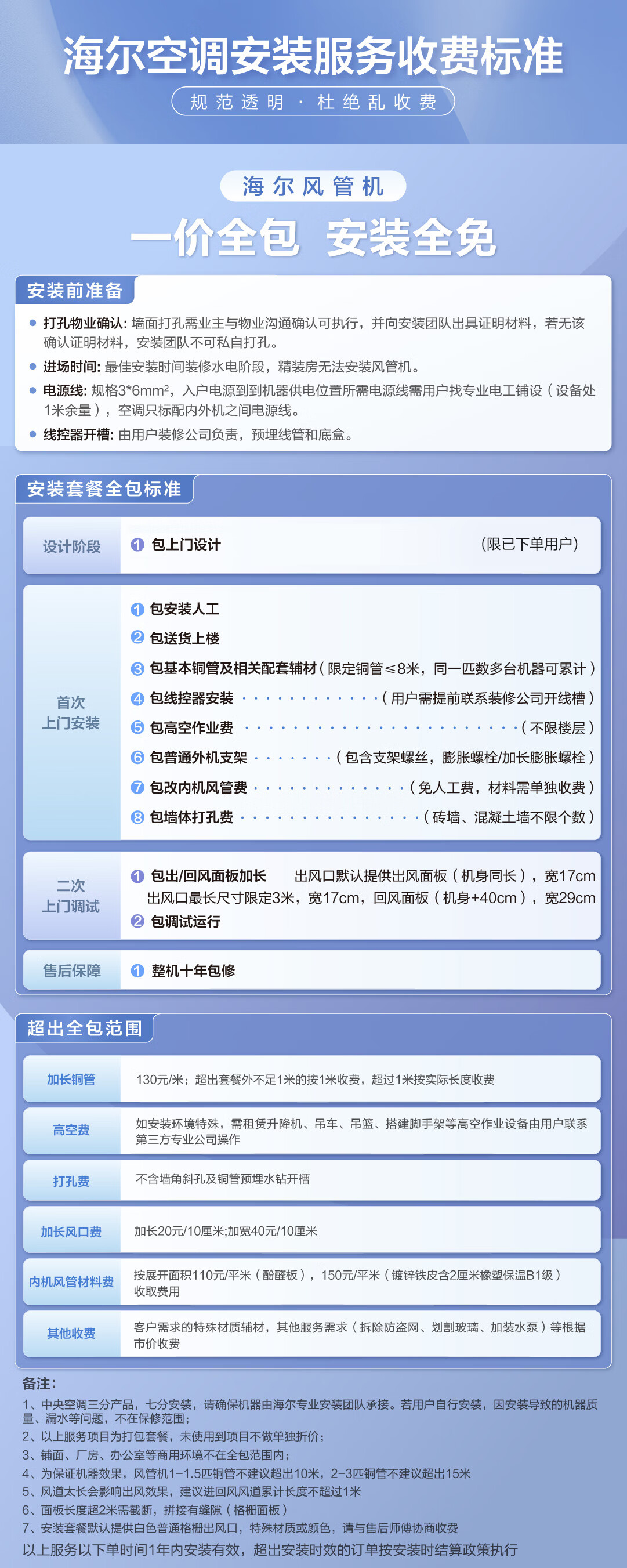 海尔(Haier)中央空调 风管机一拖一4匹嵌入式空调4p云璟Plus全直流变频一级能效