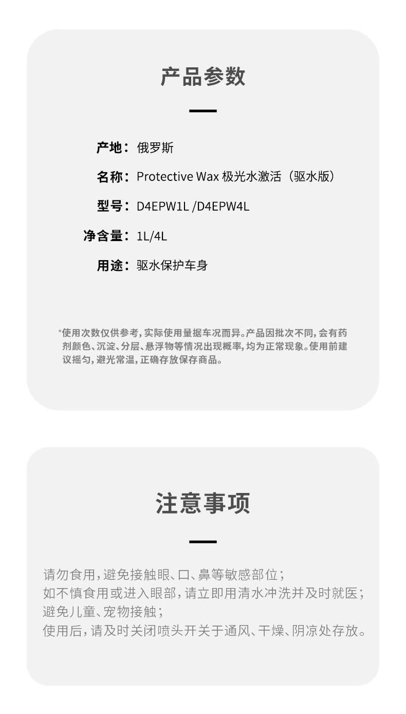 D4E Protective Wax 极光水激活(驱水版)高浓缩长效保护车漆