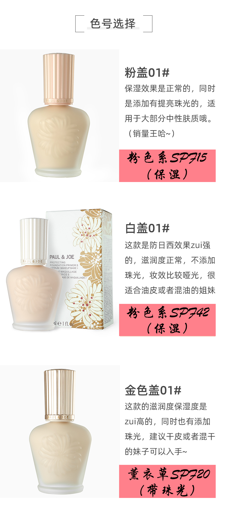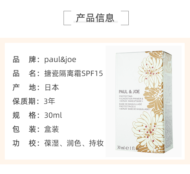 【YZ】日本paul&joe搪瓷隔离高效保湿打底调色妆前乳PJ遮瑕隔离霜30ml 粉盖01#适合白皙肤色spf15