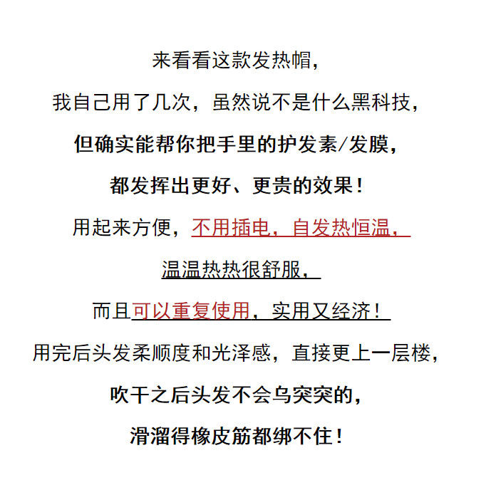 【9.9限时秒杀】头发护理浴帽护发染发焗油锡纸发膜帽发热不插电恒温加热蒸发帽子