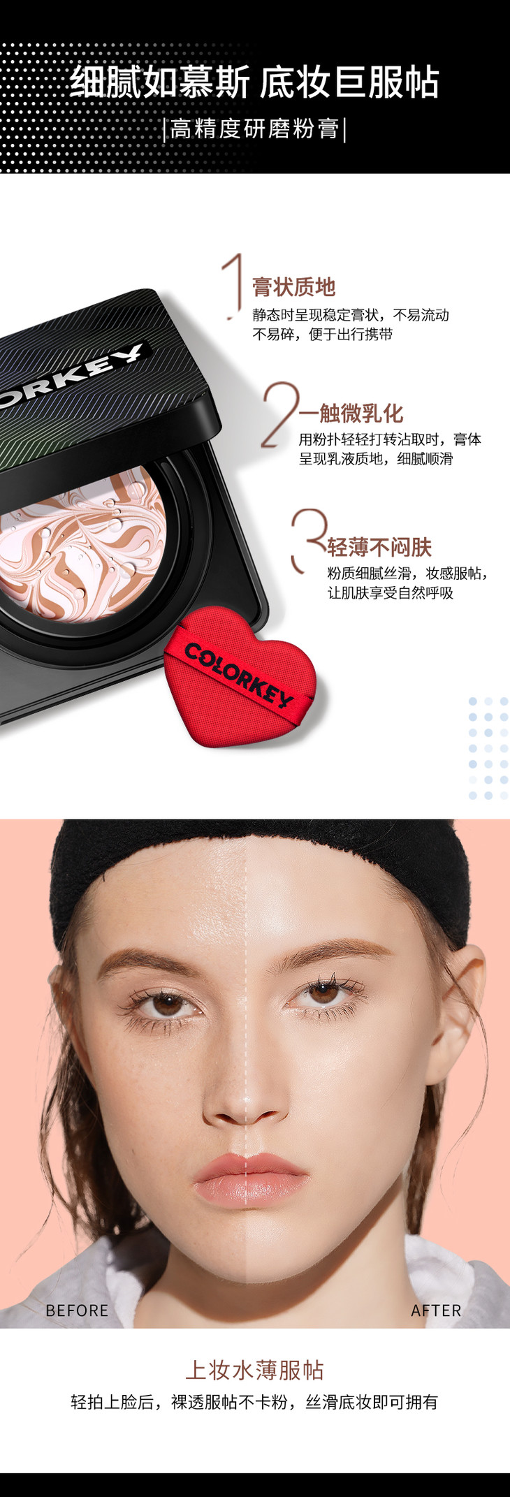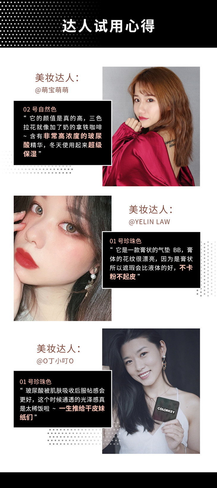 colorkey珂拉琪玻尿酸爆水珠气垫粉底液膏持久遮瑕隔离保湿BB霜女