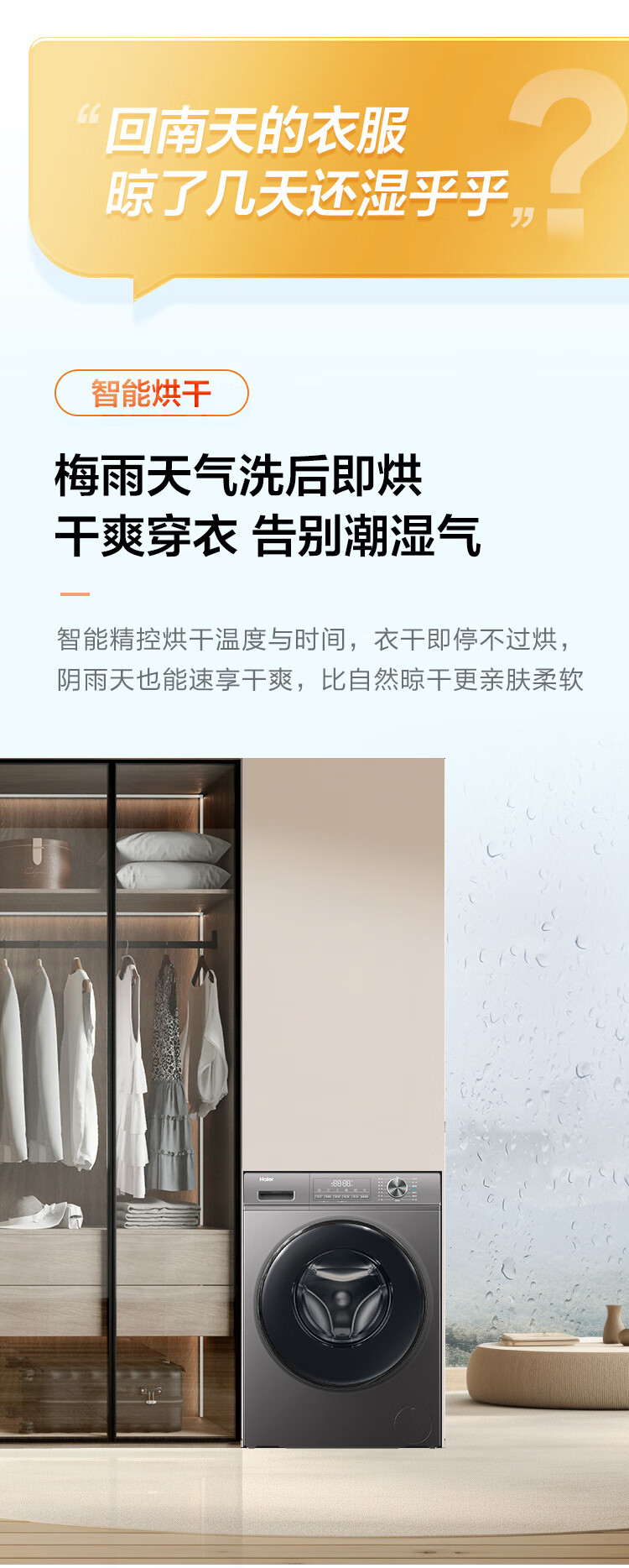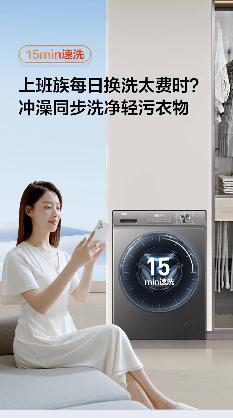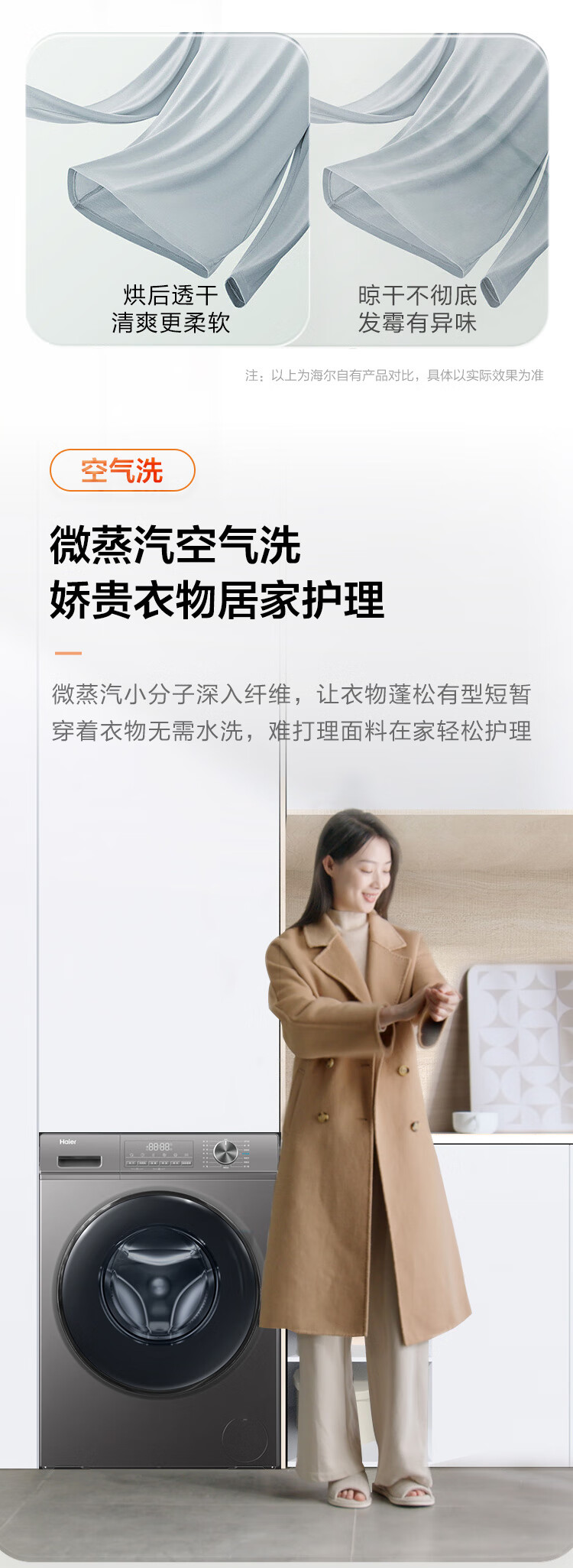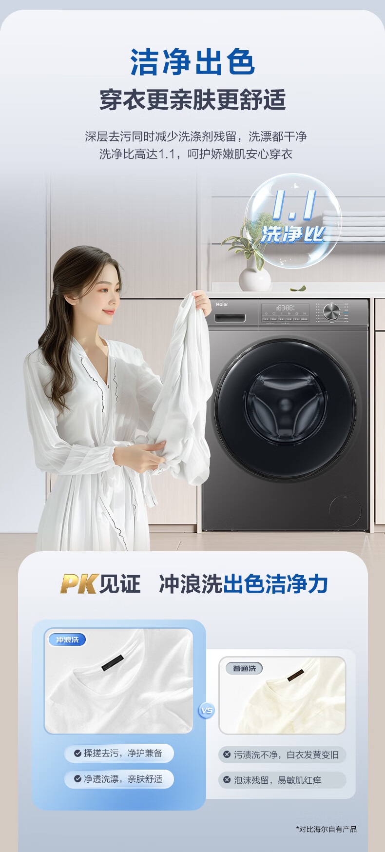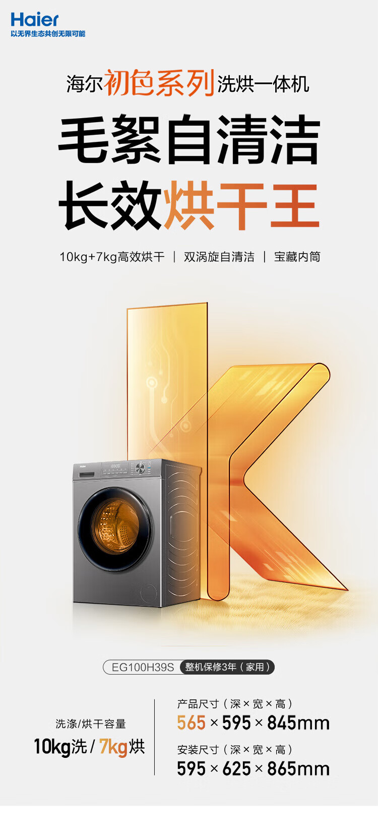 【宝藏K39】海尔10公斤滚筒洗衣机全自动变频【宝藏K39】超薄款 1.1超高洗净比+六维减震+3D柔护内筒 洗烘款