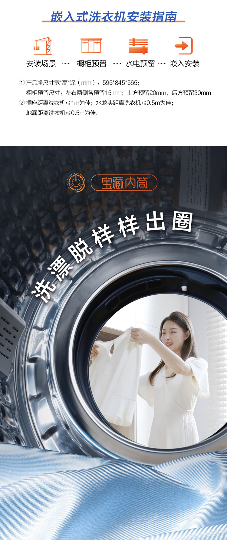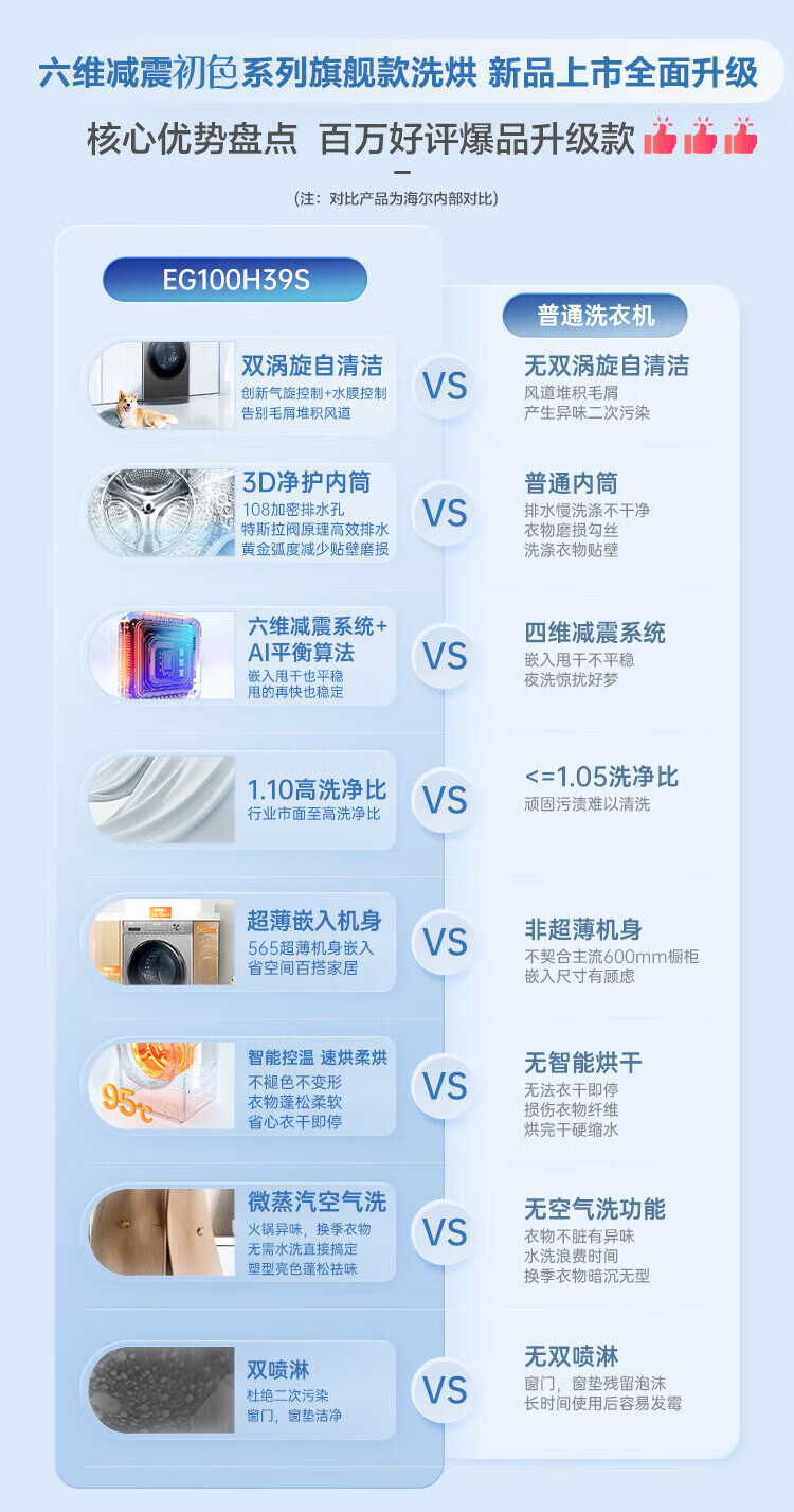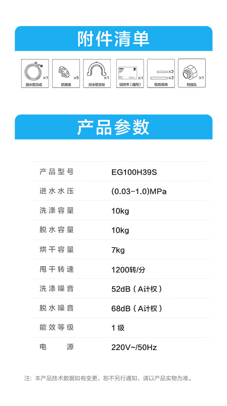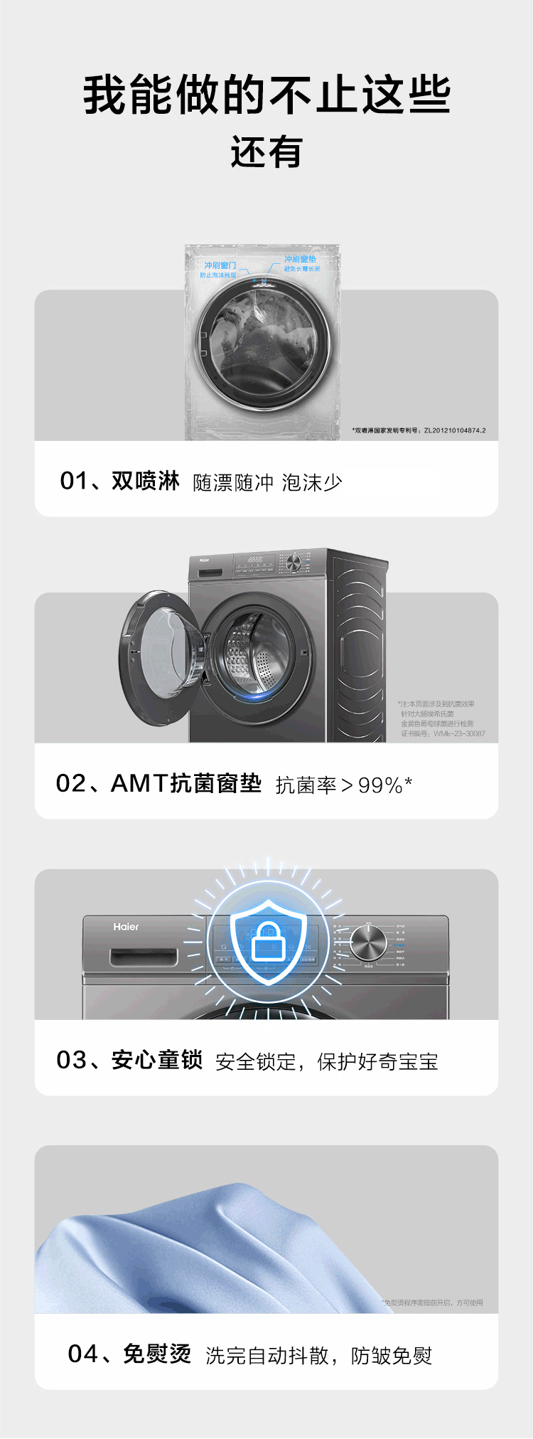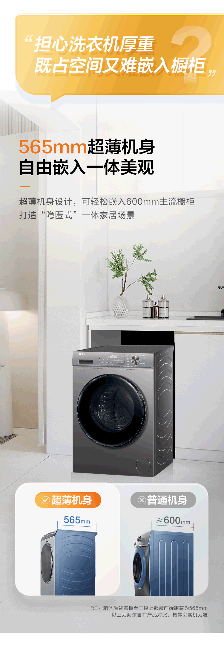 【宝藏K39】海尔10公斤滚筒洗衣机全自动变频【宝藏K39】超薄款 1.1超高洗净比+六维减震+3D柔护内筒 洗烘款
